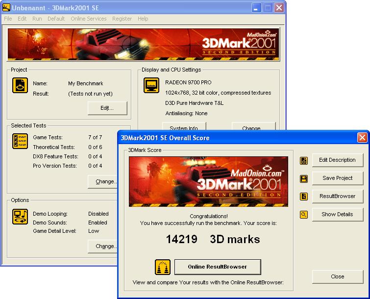 3D Mark 2001 SE ergibt etwa 14200 Punkte.