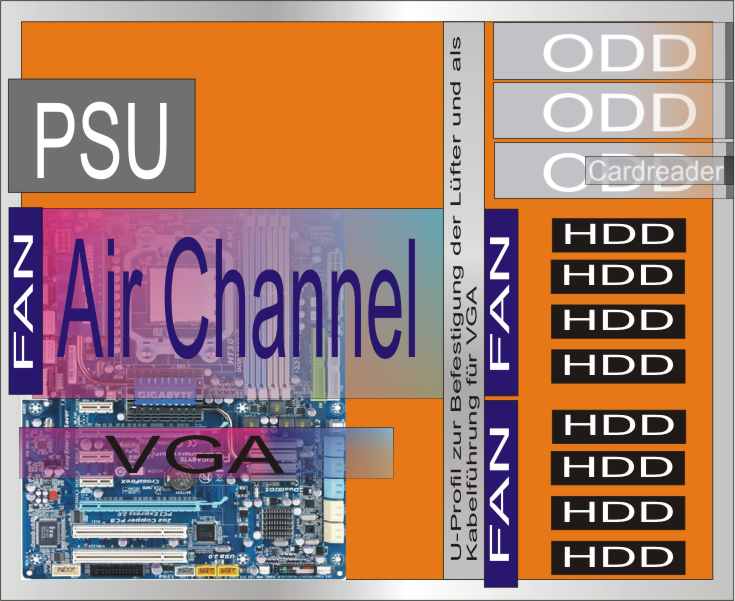 Sinn des ganzen ist in erster Linie der Spaß an der Arbeit, außerdem natürlich das Ergebnis. Wichtige Kriterien meiner Case ist die Durchlüftung welche ich im eigen erbauten Strömungskanal testen werde (Der muss auch noch fertig gestellt werden.)