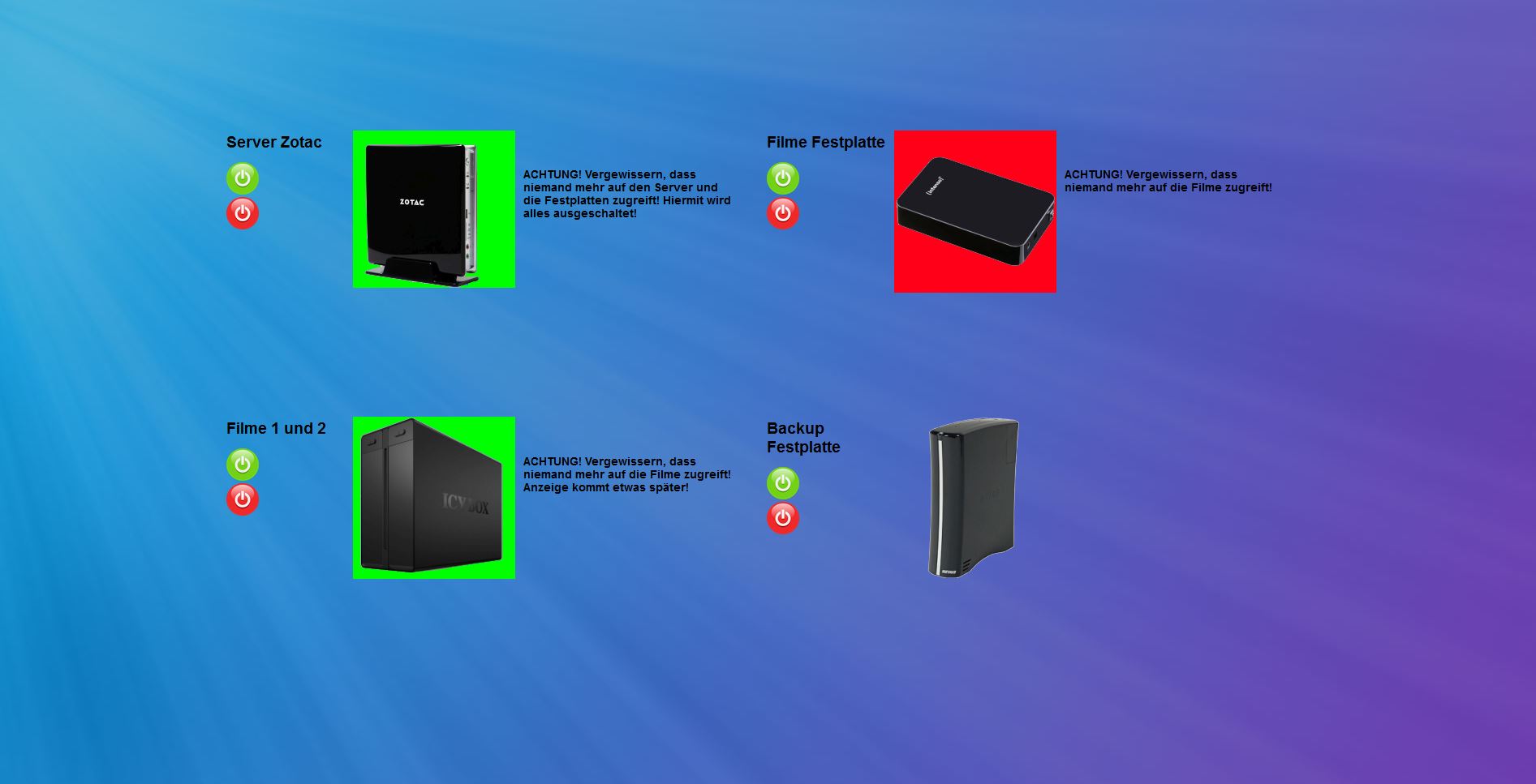 - Wenn man eine Festplatte einschaltet, soll gleichzeitig der Server gestartet werden