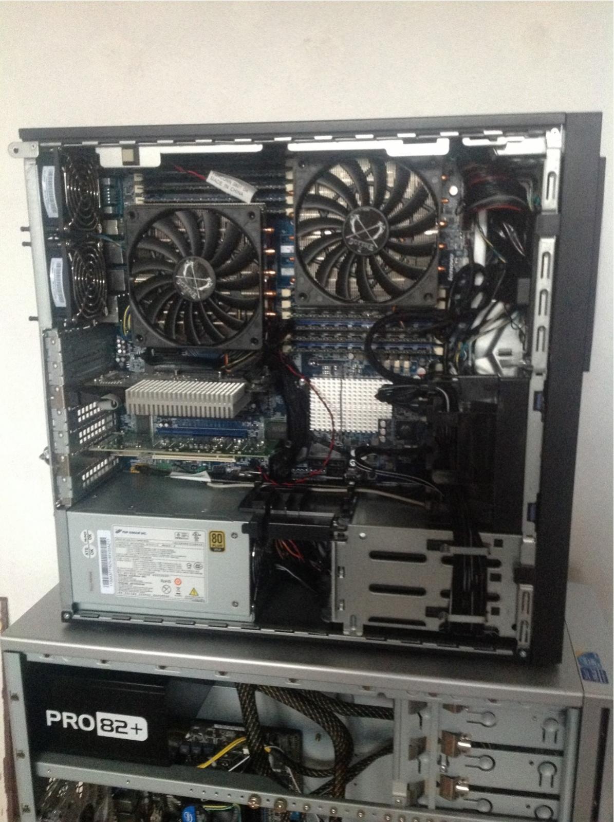 Das zweite zeigt die SAN. i5 650 mit 8GB, Adaptec 5405 mit Chenbro Extender, Qlogic FC und immo 3 x 1TB Festplatten. BS ist wie gesagt Openfiler 2.99 mit FC Target und wird auch über einen USB Stick gestartet.