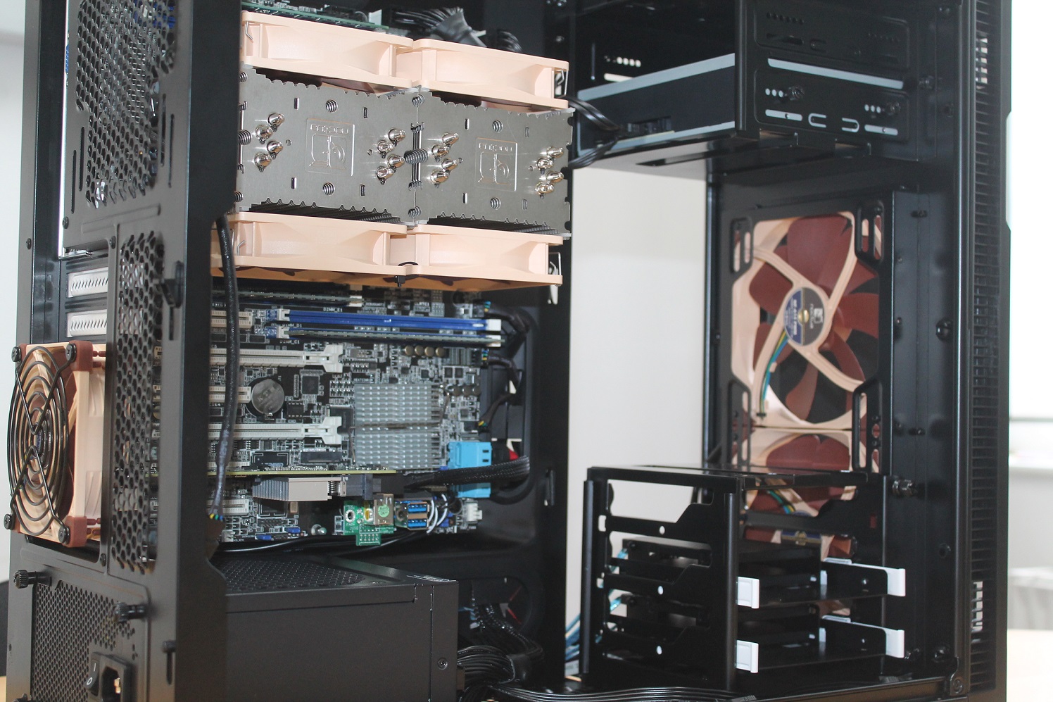 Die bestehenden Server sind zu laut (und zu viele). Trotz separatem Serverraum. Der Eingangsbereich sowie ein Arbeitsplatz sind akustisch verseucht. Ich sitze gerade mit Abstand Eingangsbereich, einem Büro und dann der Raum, in dem ich ganz am anderen Ende sitze, zusammen 19 Meter entfernt, und kann die Biester klar und deutlich hören. Allerdings ist es gerade außerhalb der Bürozeit, also sehr leise Umgebung – während der Bürozeit muss ich an diesem Platz hinhören, um die Server wahrzunehmen. Im Eingangsbereich und dem ersten Büroraum hingegen sind die Server deutlich wahrnehmbar, schwer zu überhören.