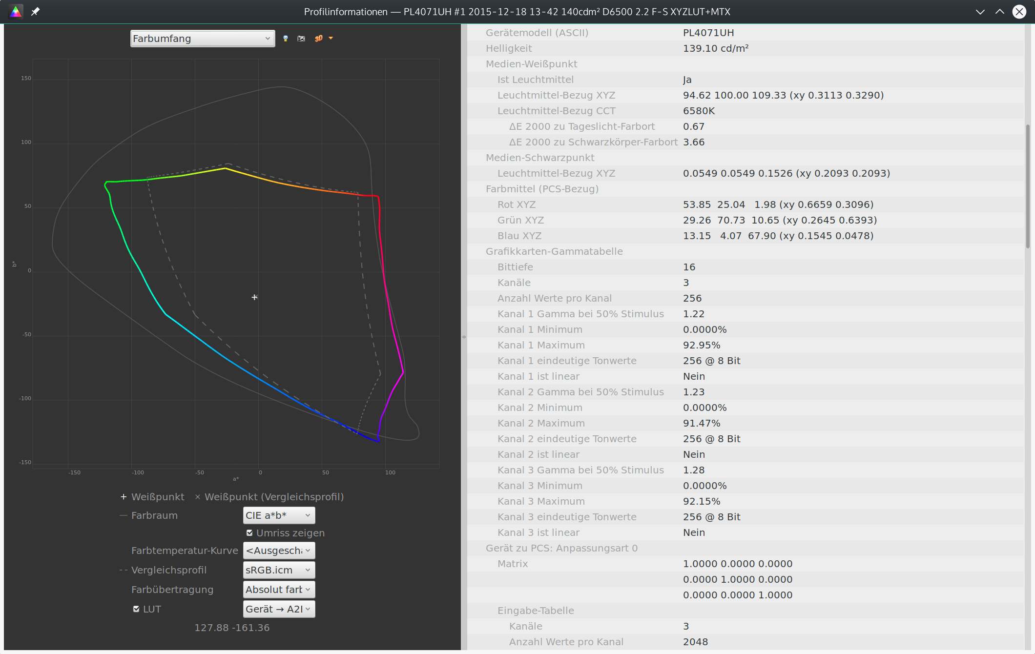- gute Farben, sRGB: 95%, Adobe: 81%