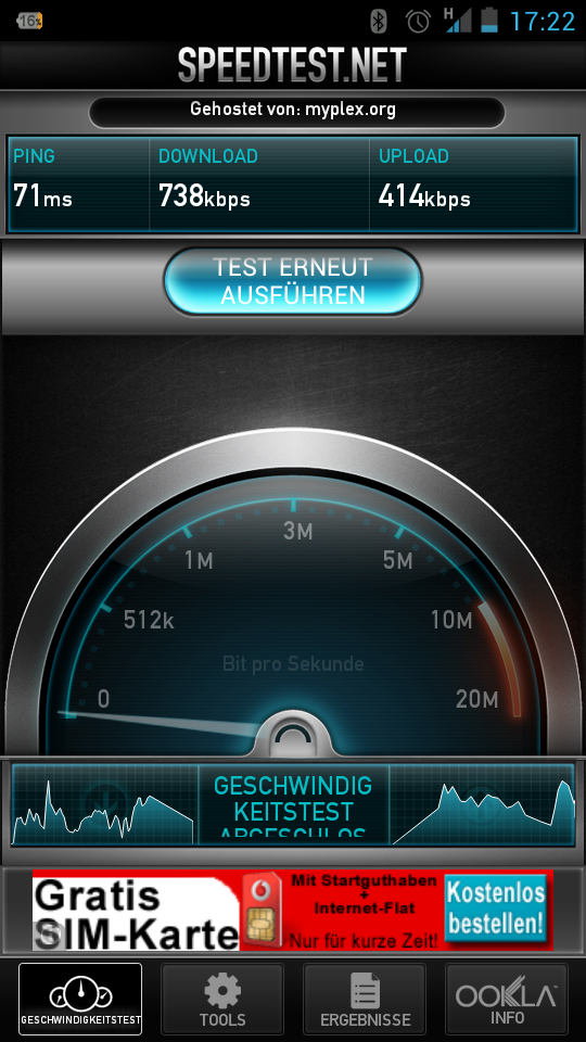 Im download schaffe ich nicht mehr wie 700kbps (mit Base Karte 3500 kbps)