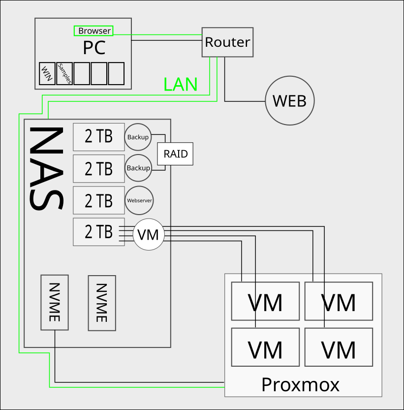Ergo müsste ich eine HDD mit 2000GB (im NAS) für Proxmox nutzen. NAS als VM...hm weiß nicht...