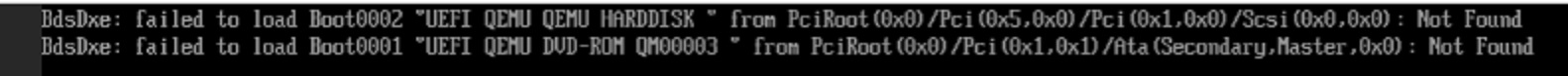 BdsDxe: failed to load Boot0001 "UEFI QEMU HARDDISK” from PciRoot(0x0)/Pci(0x5.0x0)/Ssci(0x0,0x0): Not Found