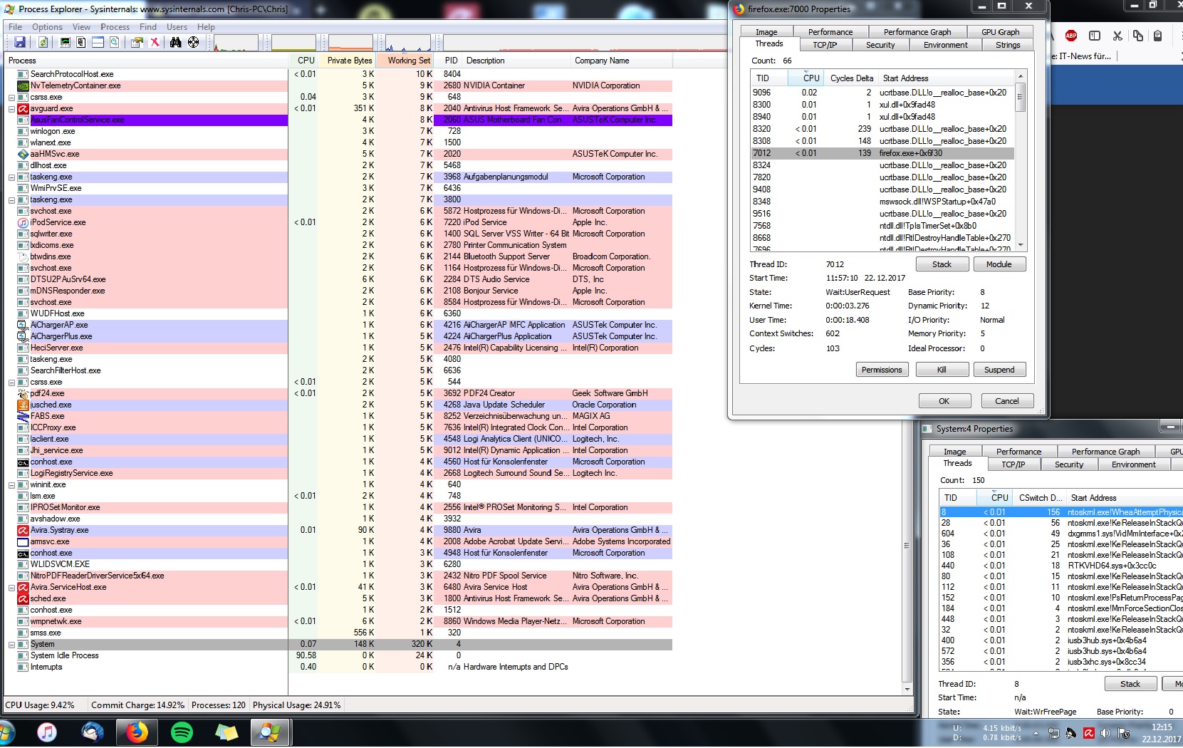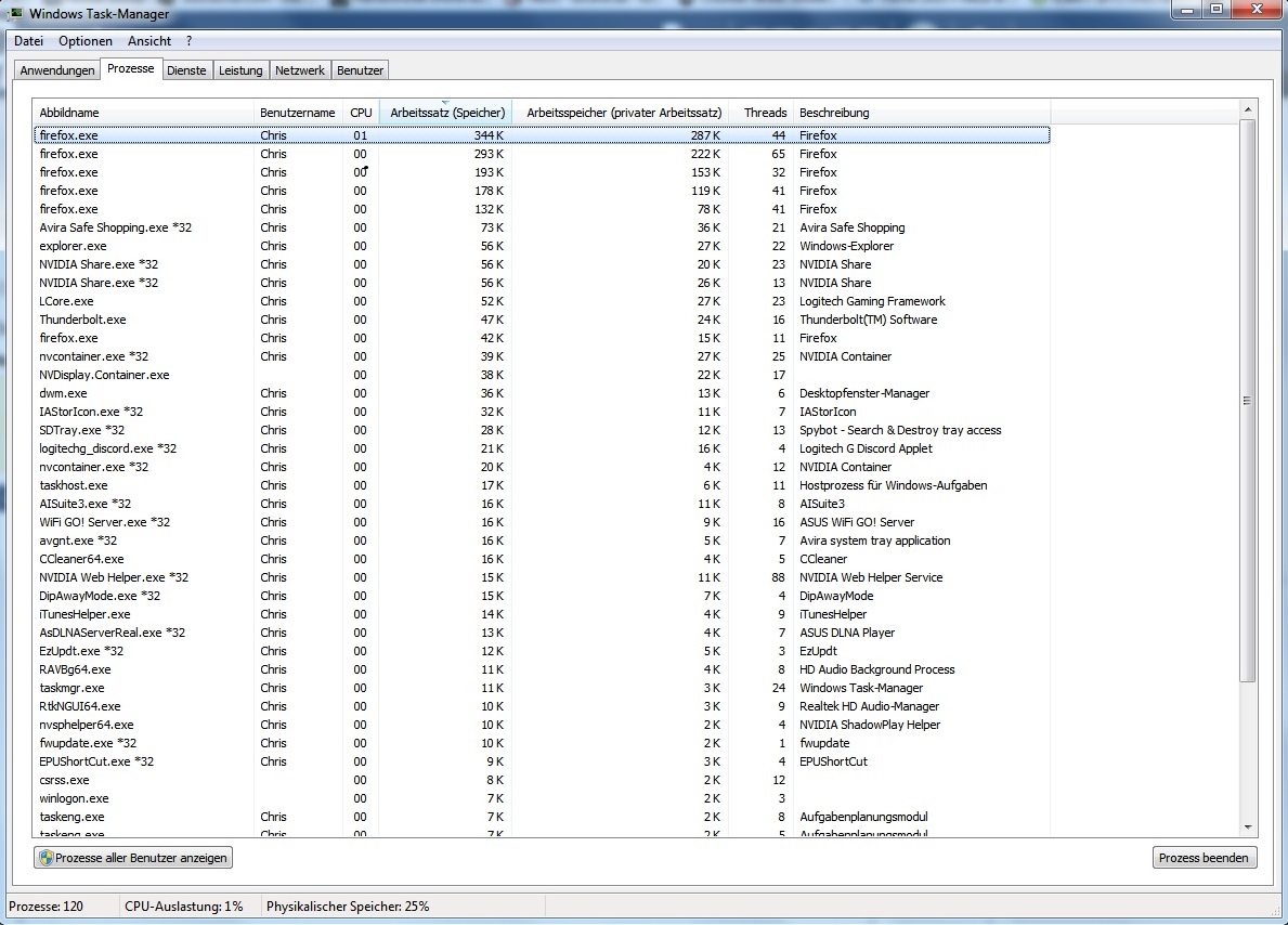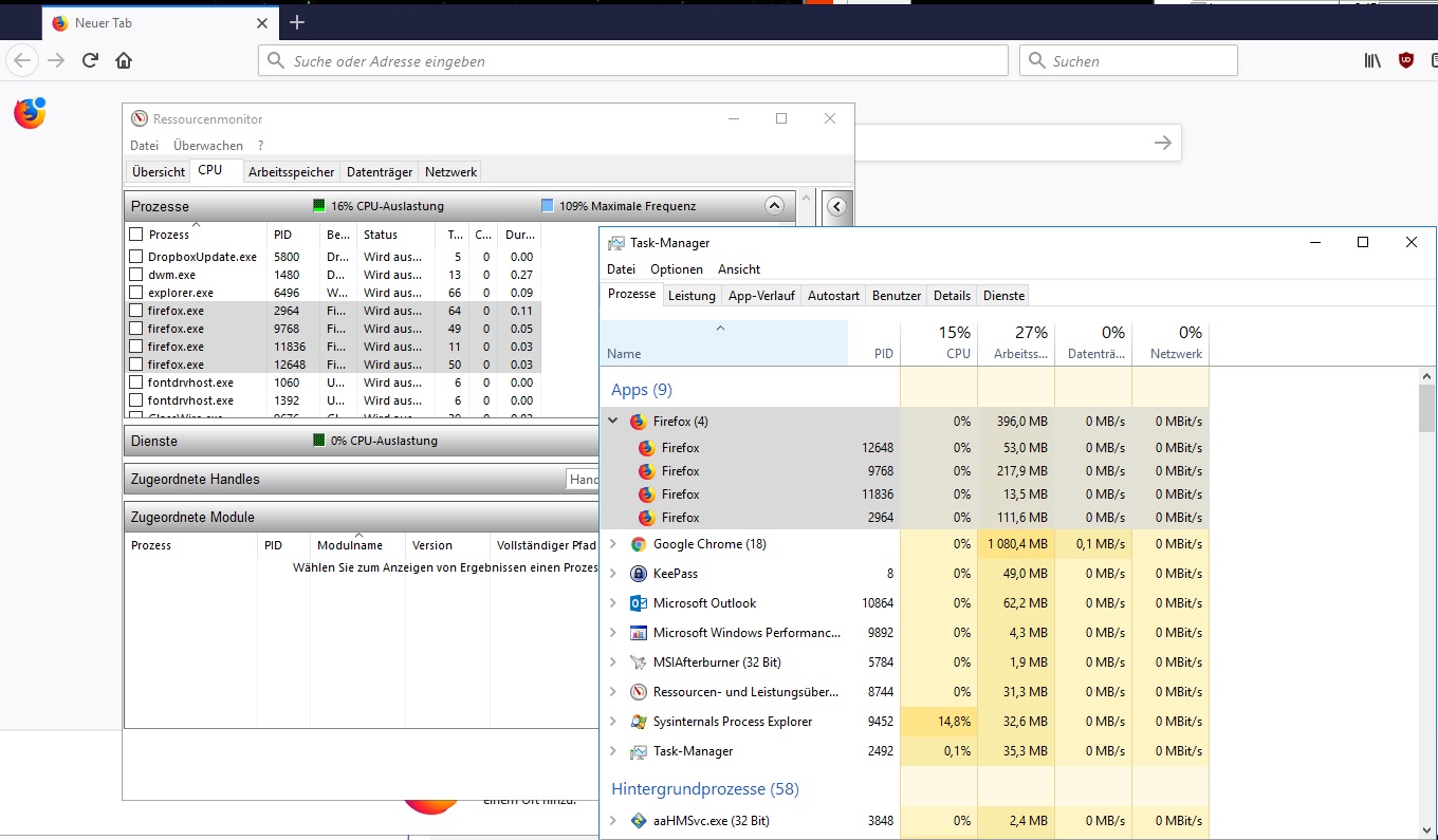 ich bräuchte mal wieder eure Hilfe. Habe seit gestern das Problem das mein Computer Prozesse mehrfach startet. Dementsprechend verzögern sich immer wieder ausführungen wenn ich etwas am PC mache. Bemerke das ganze am Mauszeiger dieser kurz einfriert und dann normal wieder weitergeführt werden kann. Wenn ich in den Taskmanager gehe sehe ich dort die mehrfach geöffneten Prozesse, wie auch das meine CPU-Auslastung teilweise dann bei 60 % ist.