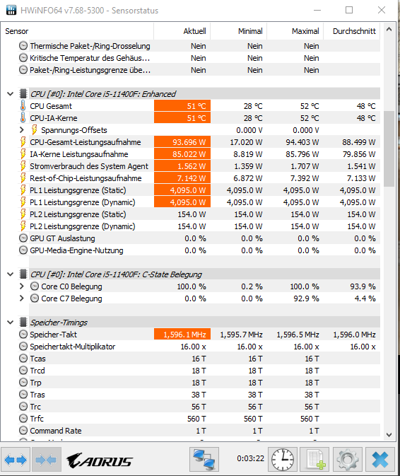 Interessant wäre es auch beim Cinebench nicht nur das kleine Fenster zu sehen sondern wesentlich mehr Sensoren. Bspw. zusätzlich die Taktfrequenzen oberhalb bei den anderen CPU-Werten ausklappen, dann kann man wesentlich mehr sehen.