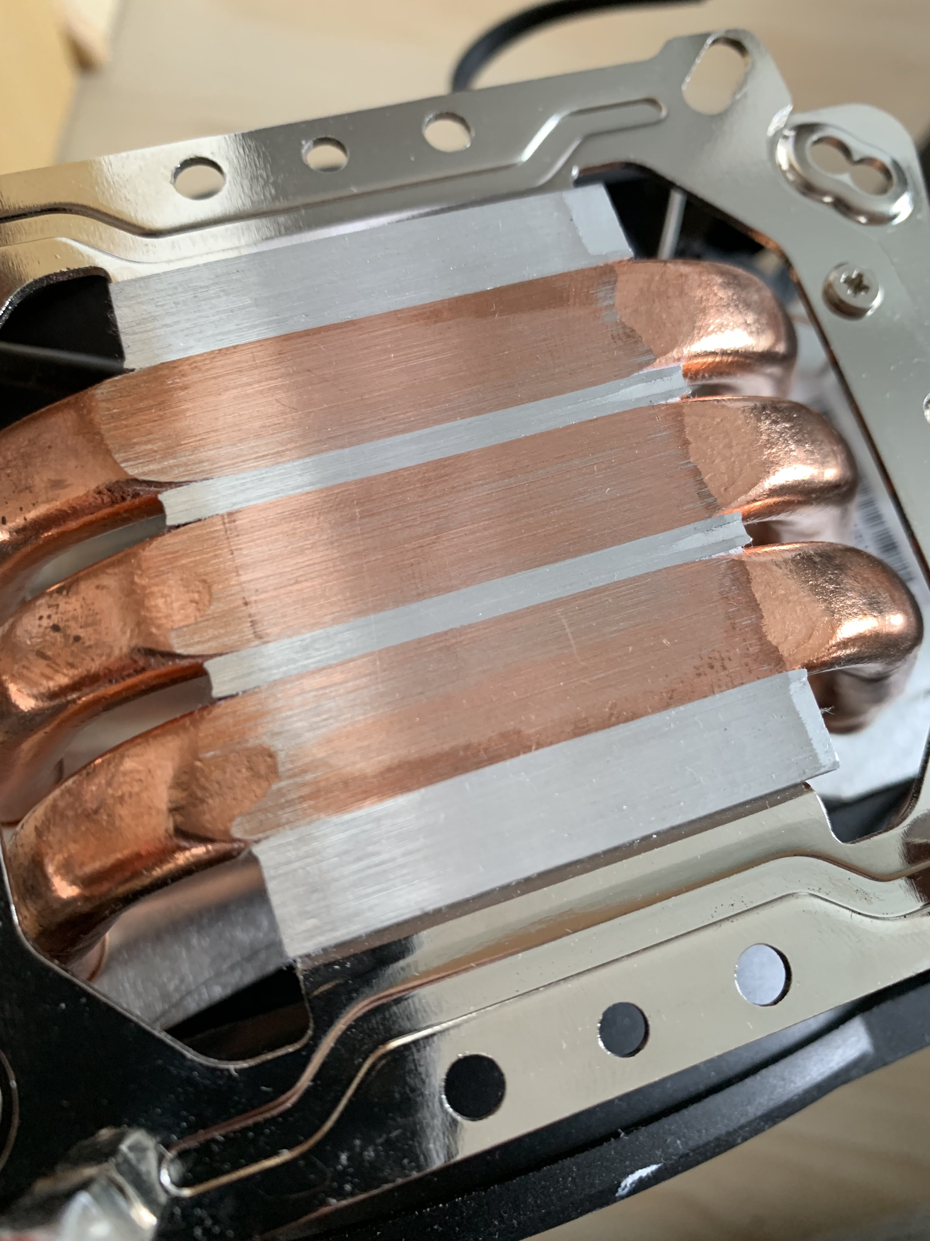 Bei 100°C Coretemps sollte der Kühler selbst sich bei Berührung richtig heiß anfühlen. 60°C sollte der Kühlkörper locker haben, eher mehr. Das sollte schon richtig unangenehm sein.