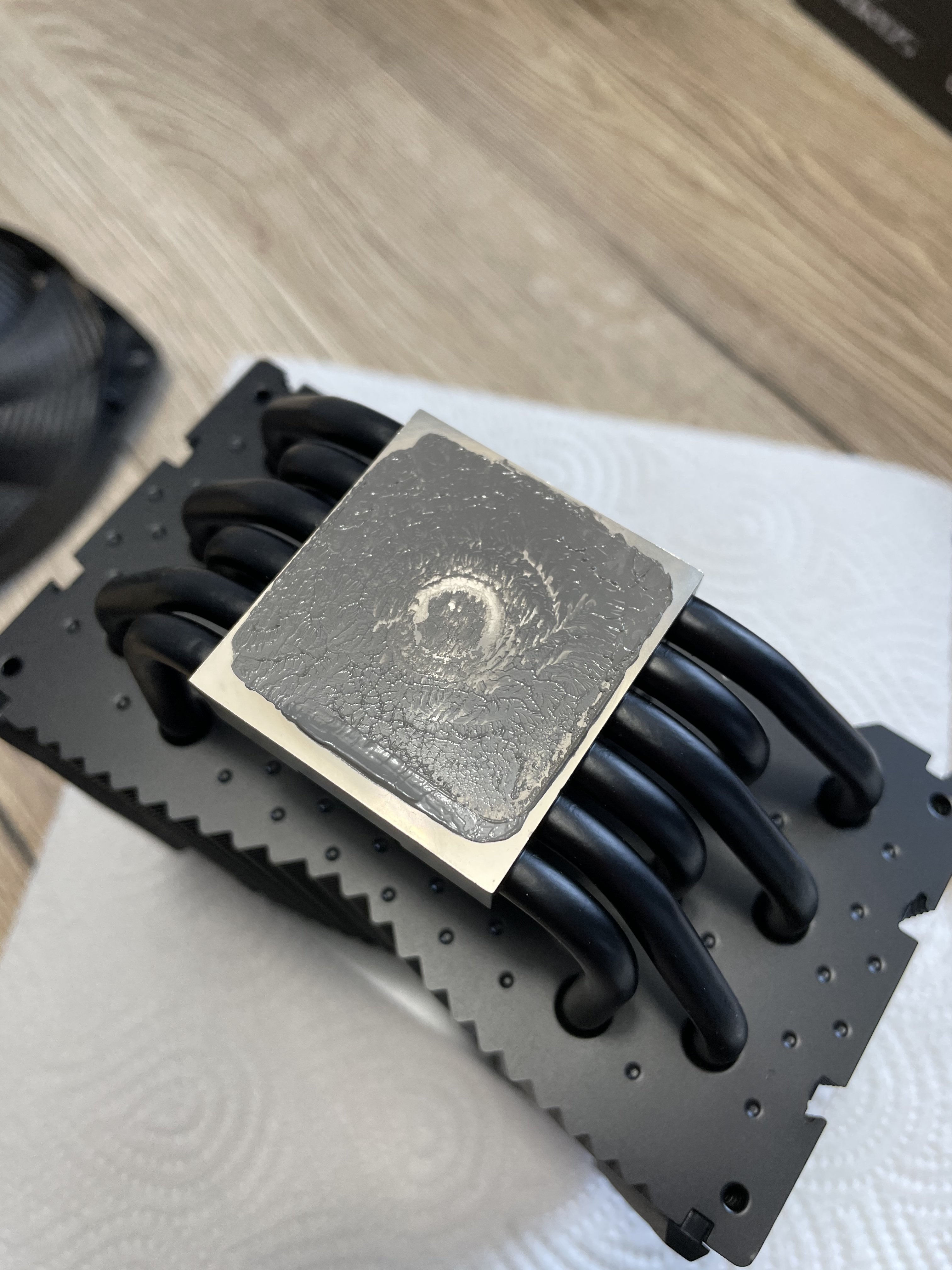 Ich würde mal ein Lineal oder etwas anderes gerades auf den Kühlerboden und den Die legen,