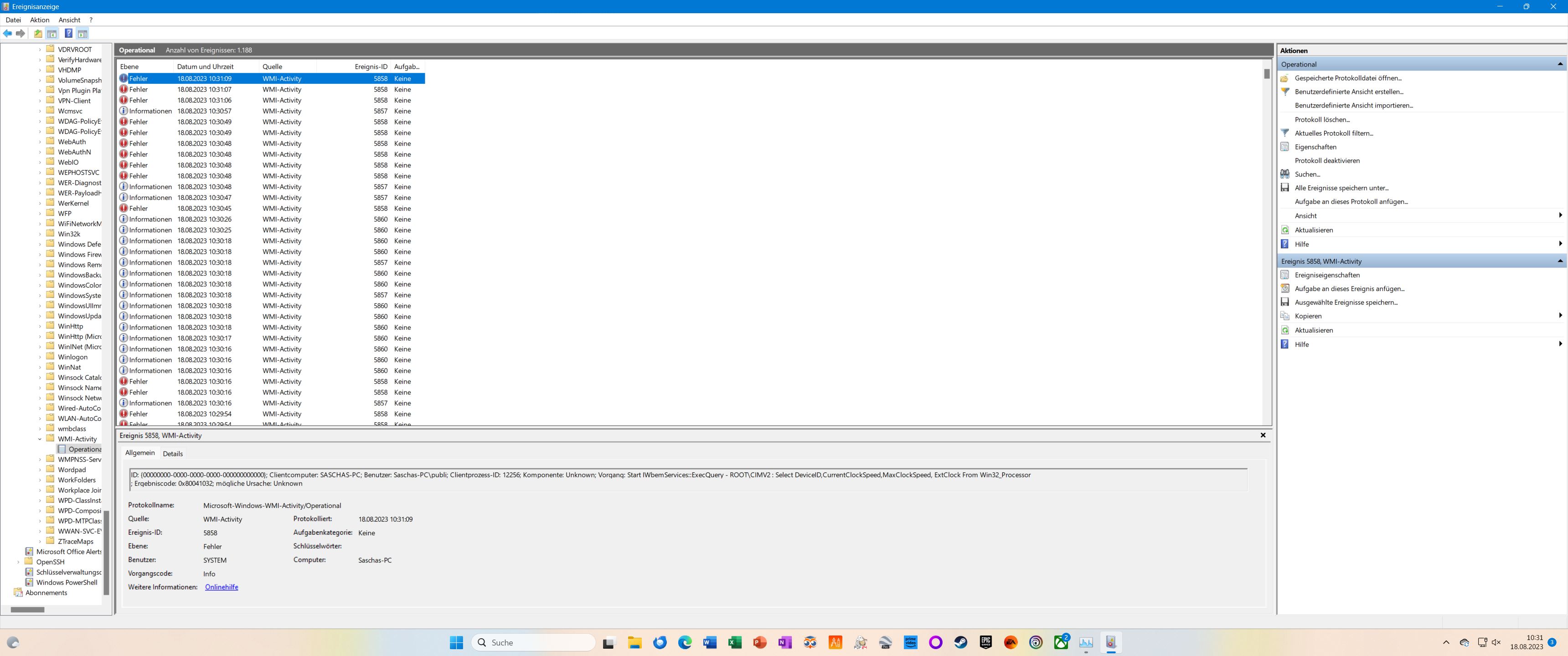 - unter der Ereignisanzeige WMI-Activity werden glaube ich recht viele Fehler angezeigt (siehe Screenshot)