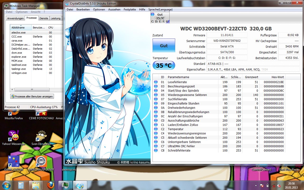 Installiert ist Windows 7 64 Bit, er wird als Dienstrechner für meine Frau benutzt.