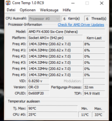 Mal eine frage zum Prozessorlüfter zur zeit habe ich ein AMD FX 6300 95W, der so auf eine Temperatur von 30 bis 50° hat. Ich habe aber ein Neuen CPU da denn FX 8300 der hat auch 95W.