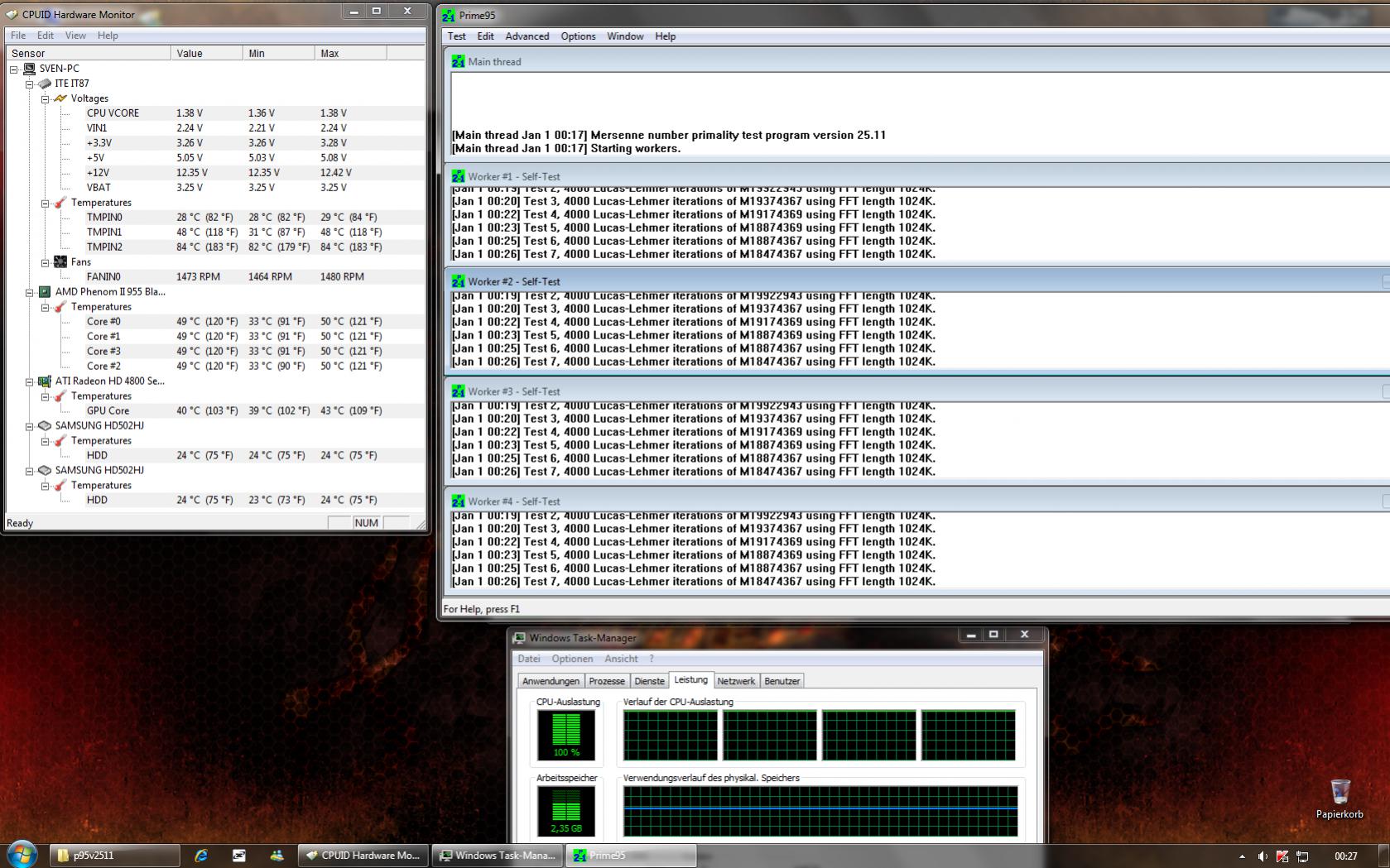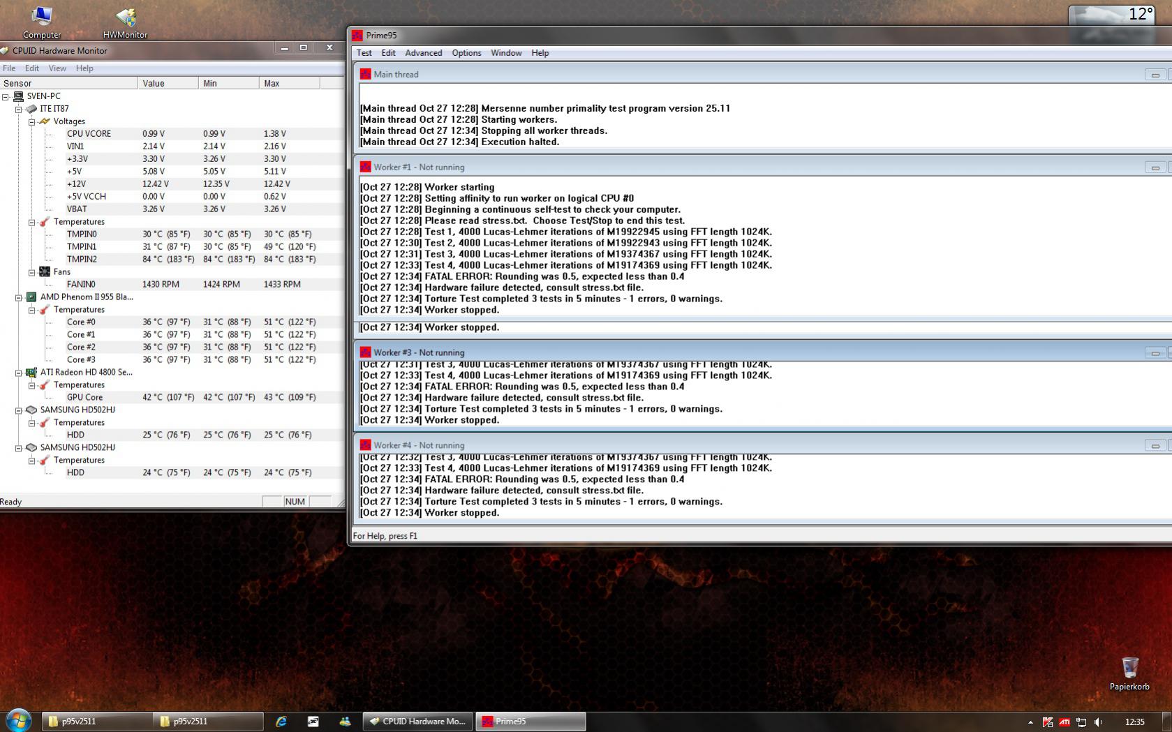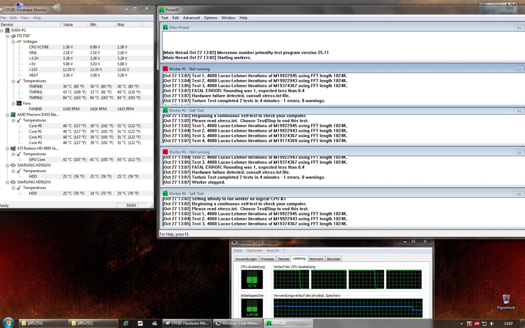Mein aktuelles System wies auch Stabilitätsprobleme - ich musste neben der CPU Spannung (vCore) ebenso die im Bios einzustellende NB-VID Spannung (beeinflusst Stabilität des Memory Controllers (in CPU integriert)) um 0.0500V verringern, da das System sonst unter Last abstürzte - ohne OC versteht sich.