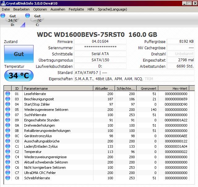 Per S.M.A.R.T. habe ich nicht die passenden Parameter gefunden.