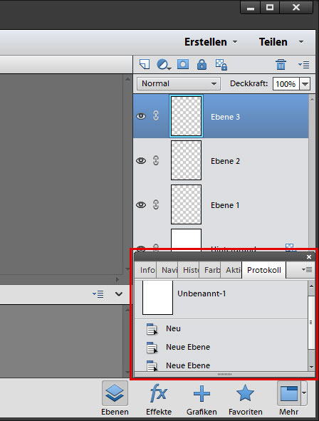 kann man in PsE 12 die Bedienfelder (Navigator, Protokoll, Farbfelder, ...) im Expertenmodus rechts bei den Ebenen andocken, so wie man es aus Ps kennt? Das schwebende Fenster rastet nur rechts und unten am PsE-Fenster ein; wenn man aber das PsE-Fenster skaliert, bewegt sich das schwebende Fenster nicht mit. Wenn man mehrere Ebenen hat, sind diese hinter dem Fenster nicht mehr sichtbar.