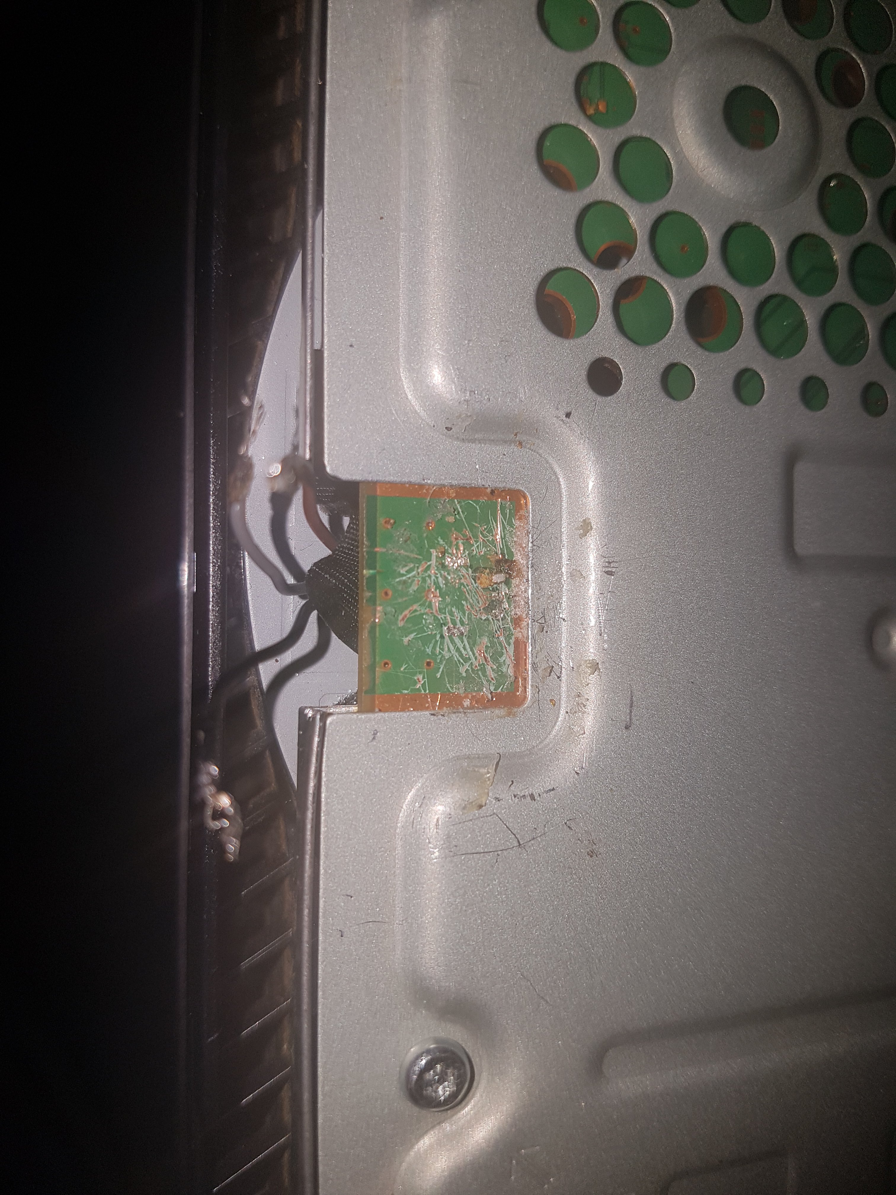 Da sind so viele Kratzer im PCB, Worst Case sind da Leiterbahnen durchtrennt oder gebrückt.