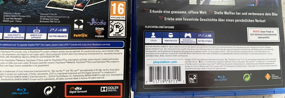 Auf den Games die ich habe steht auf der Hüllenrückseite bei den wenigsten bei mir das Soundformat drauf (auf dem Elden Ring PS4 Case welches ich habe ist zumindest DTS und Dolby Logo drauf).