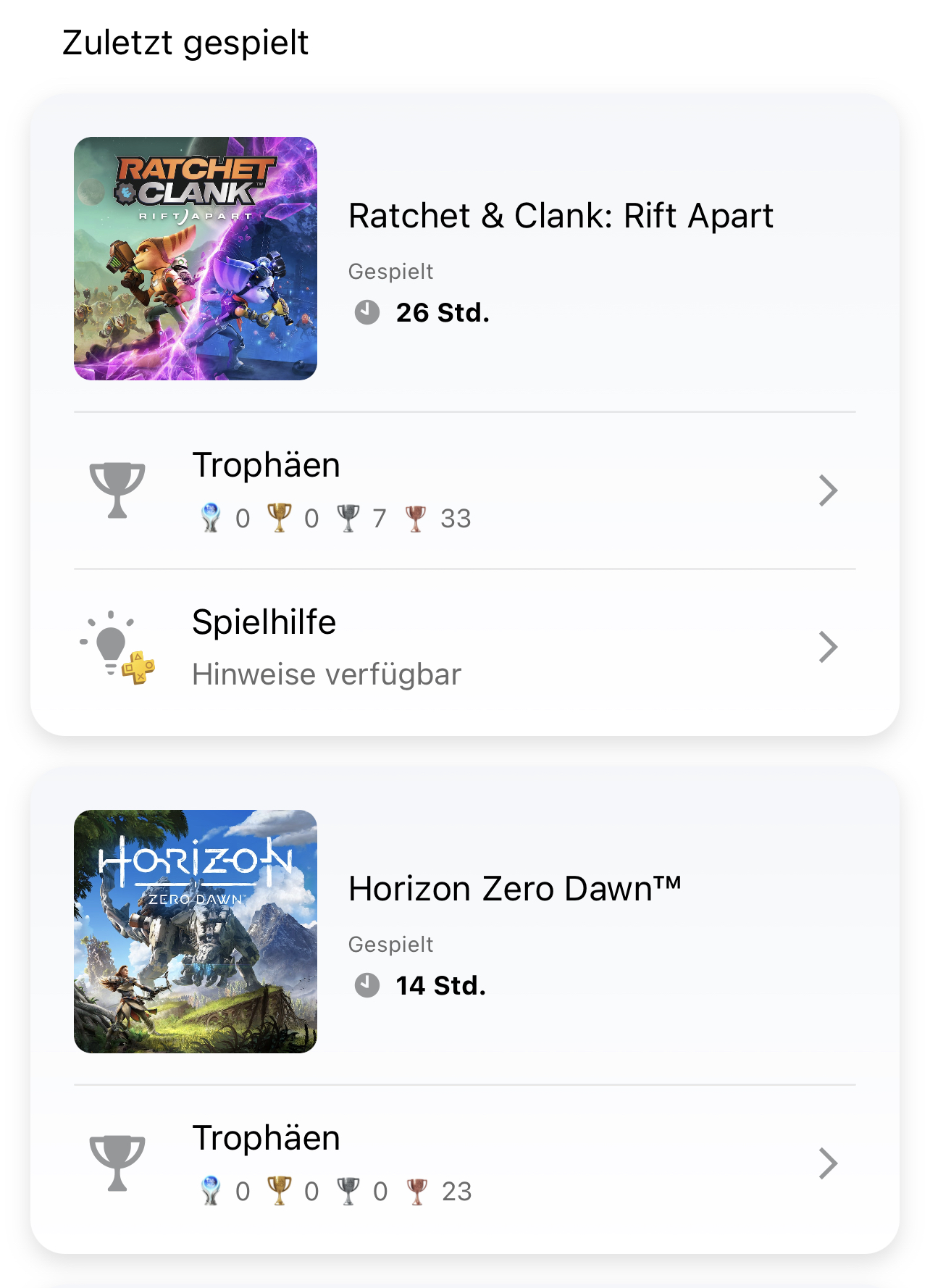Ich hab seit 3 Tagen eine PS5 und mich quält ein komischer Bug. Auf meinem Playstation Profil wird in den Kategorien "Am Meisten Gespielt" und "Spiele" absolut nichts angezeigt. Im Fall der Spiele steht sogar dort, ich würde gar keine besitzen.
