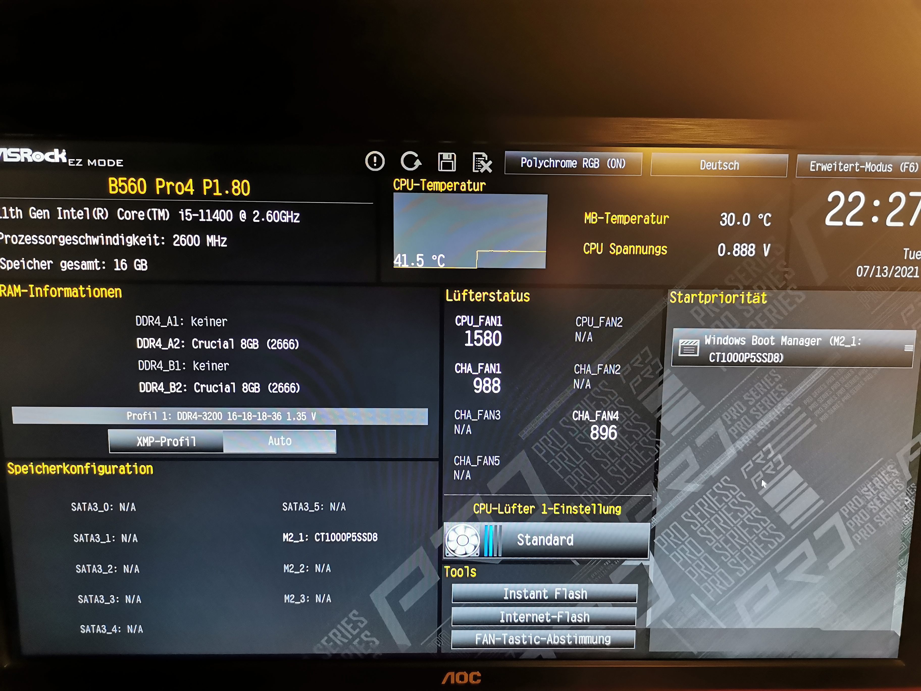 - Arbeitsspeicher (RAM): Cruxial Ballistix 16GB 3200