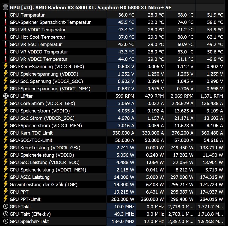Zwischenzeitlich vermutete ich, dass auch die Wärmeleitpads der GPU so langsam ausgeölt sind und werde auch diese gleich mit austauschen (ThermalGrizzly Minus Pad 8 in div. Dicken/Stärken). Anfänglich war der VRAM mal ~12°C kühler als er es jetzt vor dem Pad-Tausch gewesen ist.