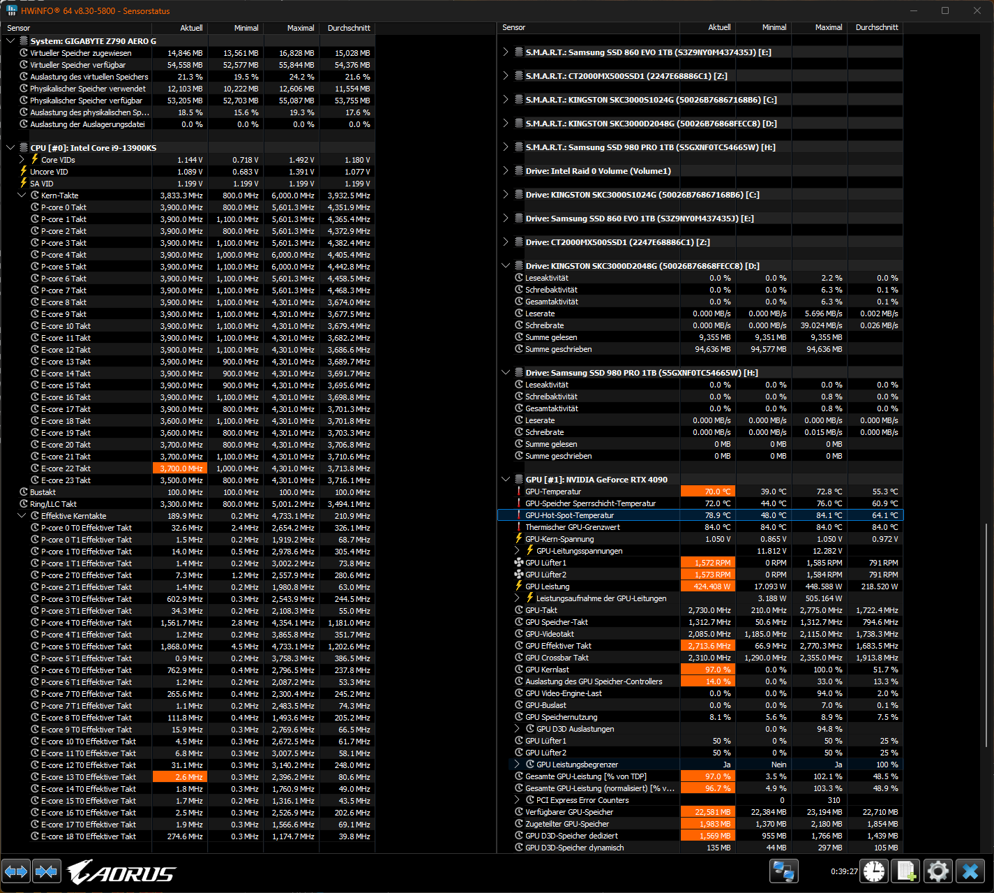 Man kann festhalten das der 13900KS im Schnitt 2-3 °C kühler läuft.