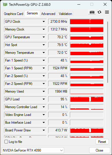 Schwieriger ist es eine Aussage zur RTX4090 zu geben. In Furmark kam ich vor dem Tausch nicht auf 100% Last was mich sehr verwundert hat. Ich habe den RivaTuner im Verdacht gehabt , jedoch bewarheitete sich dies nicht.