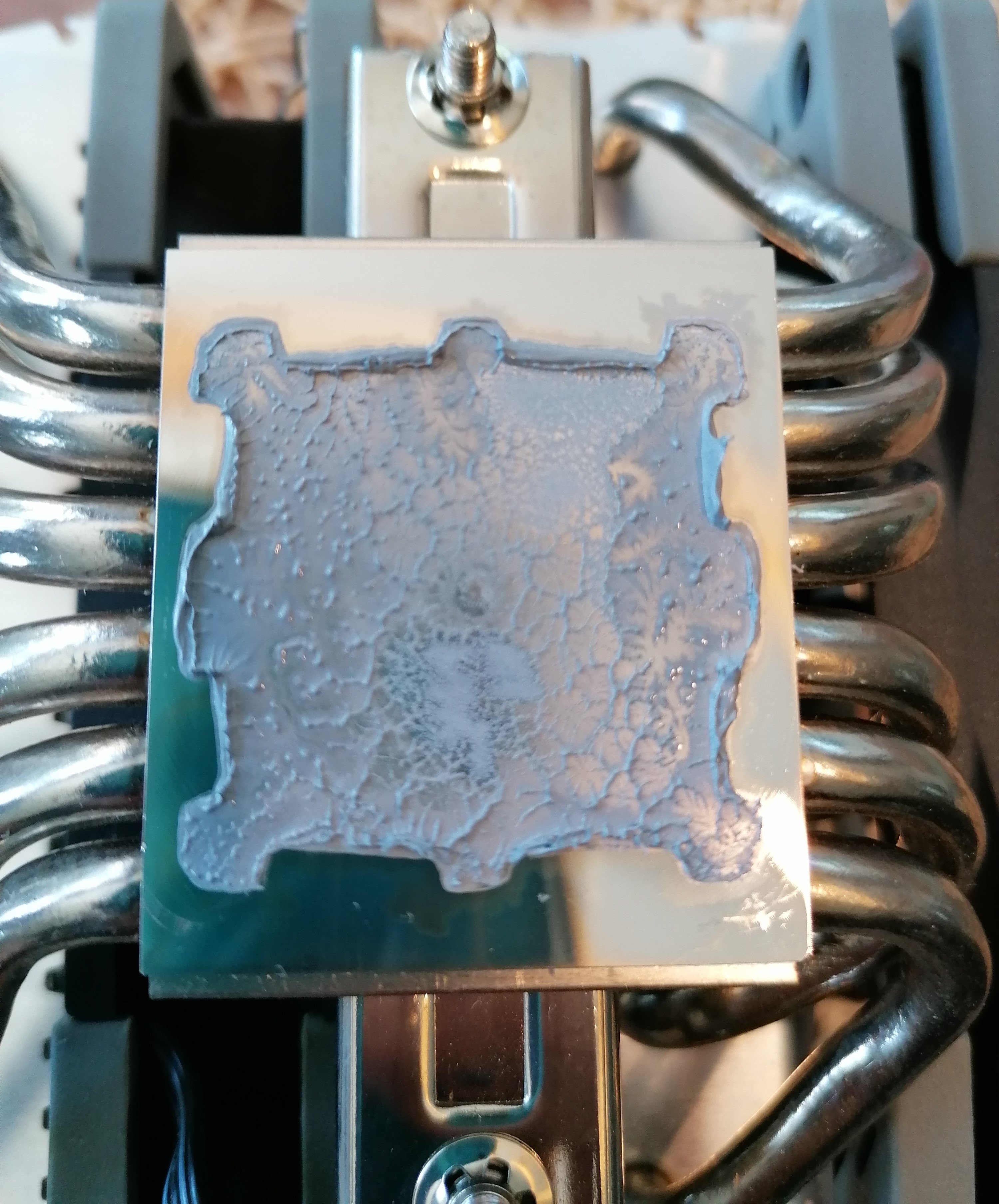 So sieht der PTM-Abdruck auf dem Kühler aus, wenn noch kein BurnIn stattgefunden hat: