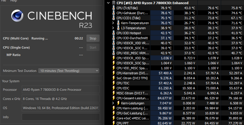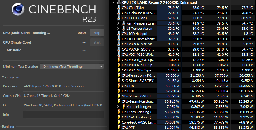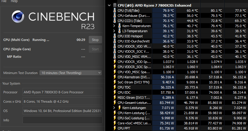 Die CPU lief anfänglich mal 4450Mhz Allcore bei ~84°C.