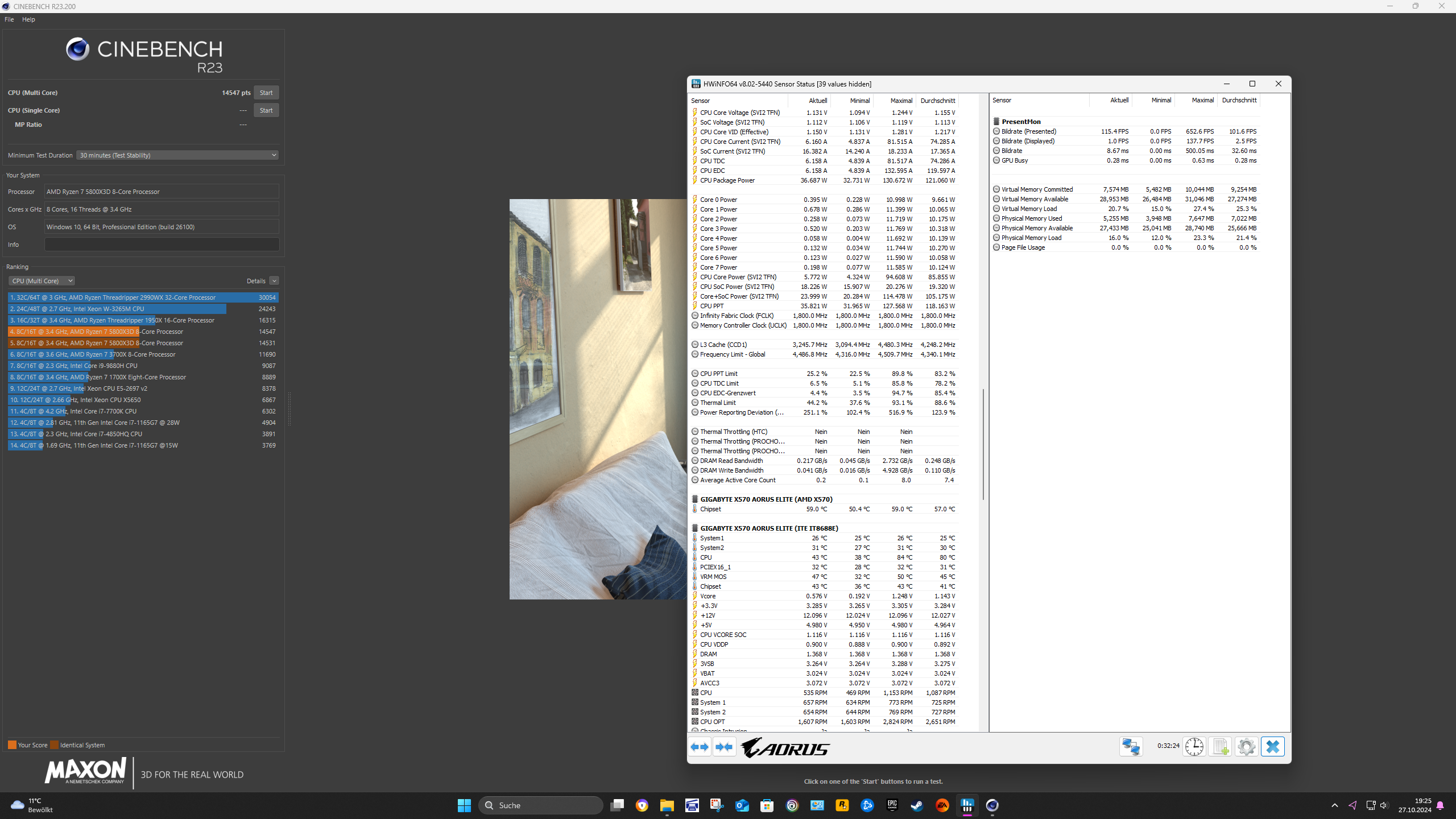 Hardware: Ryzen 5950X übertaktet auf 4,6 Ghz Allcore mit 1,38v (nicht geköpft, nicht gelappt, kein Flüssigmetall benutzt, nicht Selektiert)
