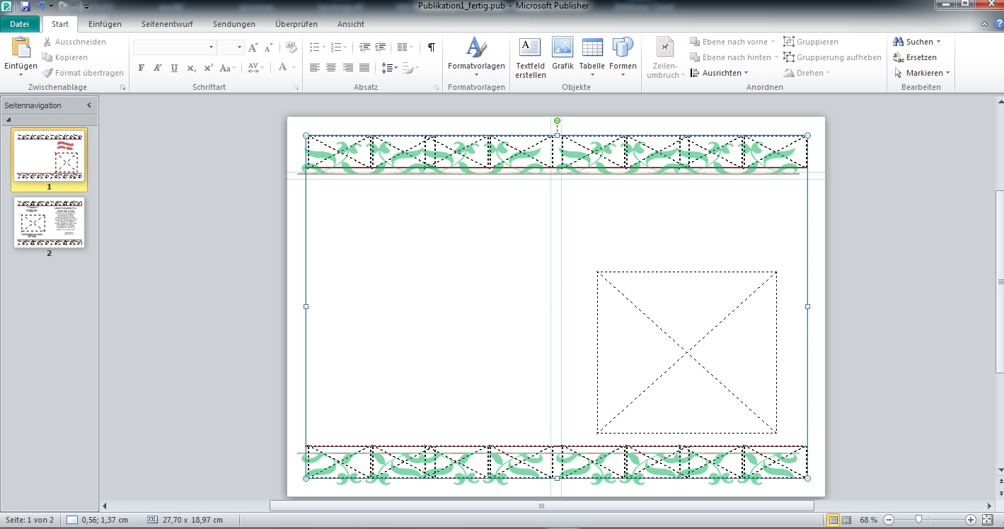 Die Datein wurden mit Publisher 2010 erstellt und direkt in die Dropbox gespeichert. Als ich die aber gerade vorher aufmachen wollte (ebenfalls mit 2010), kam der Schock. Statt den Bilder sind nur linierte X zu sehen.