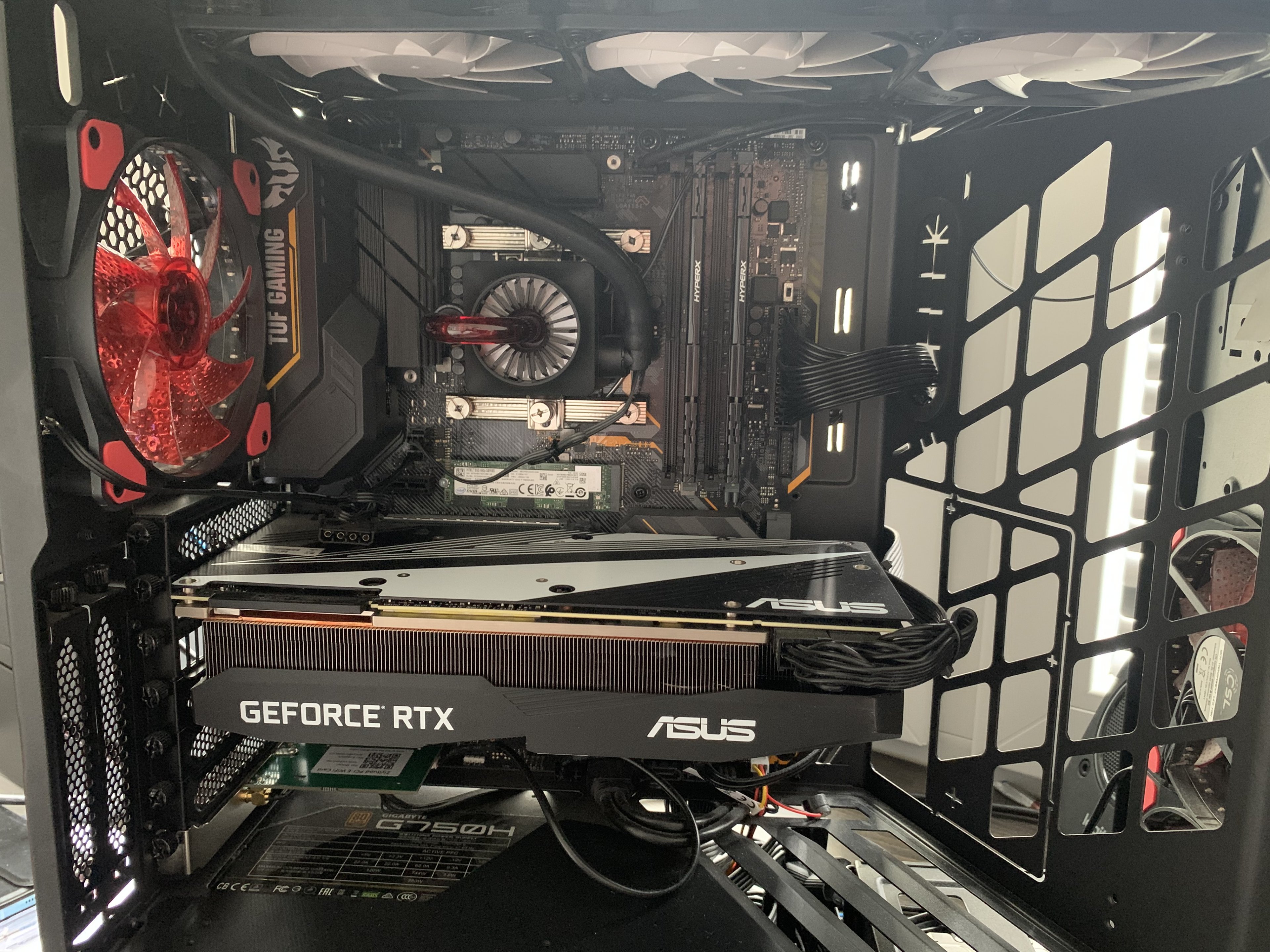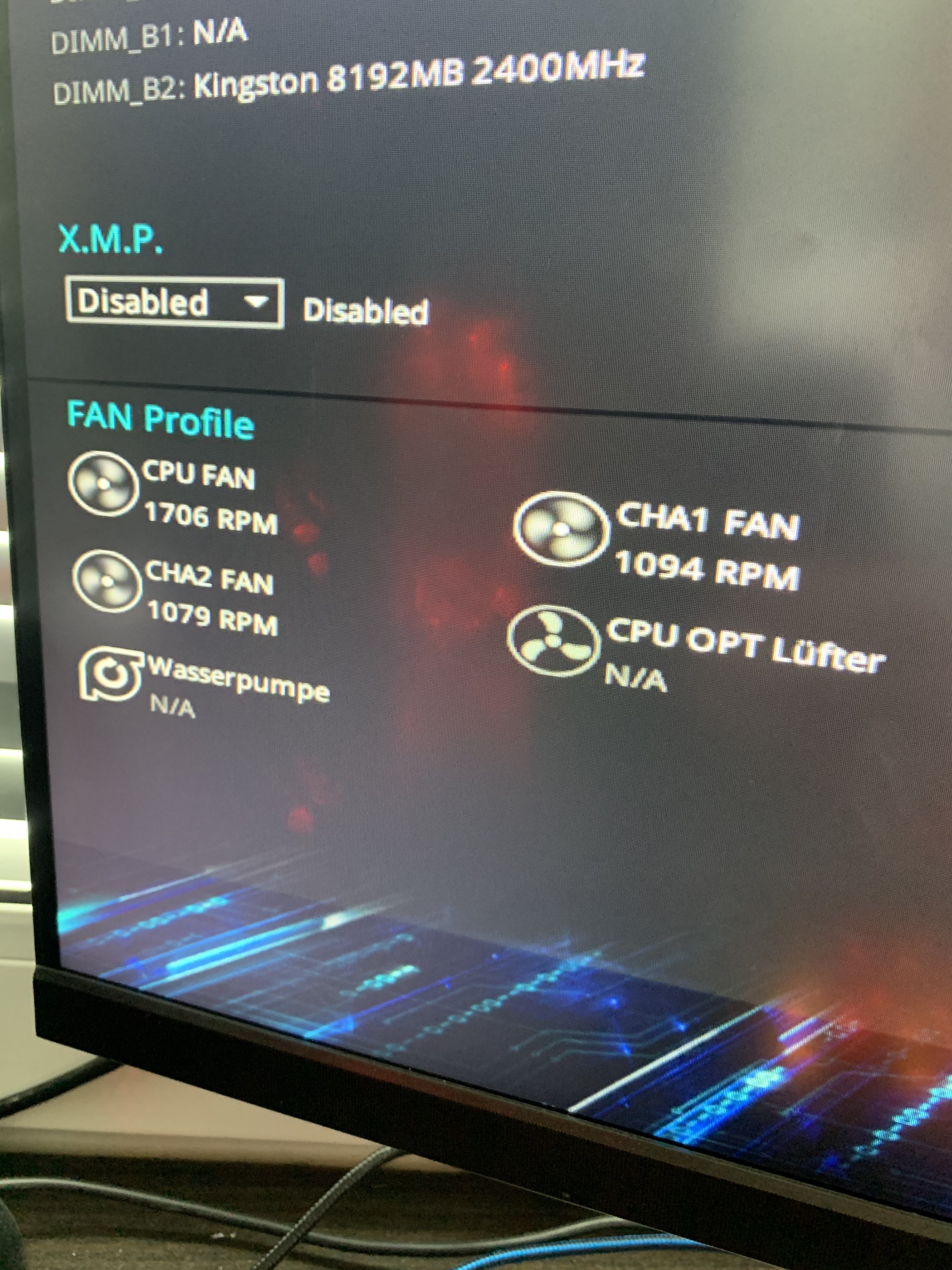 Nach langem Suchen wurde ich im BIOS fündig, FANs drehen sich mit knappen 1.100 RPM, CPU FAN mit 1.700, die Wasserpumpe wird aber mit N/A angezeigt.