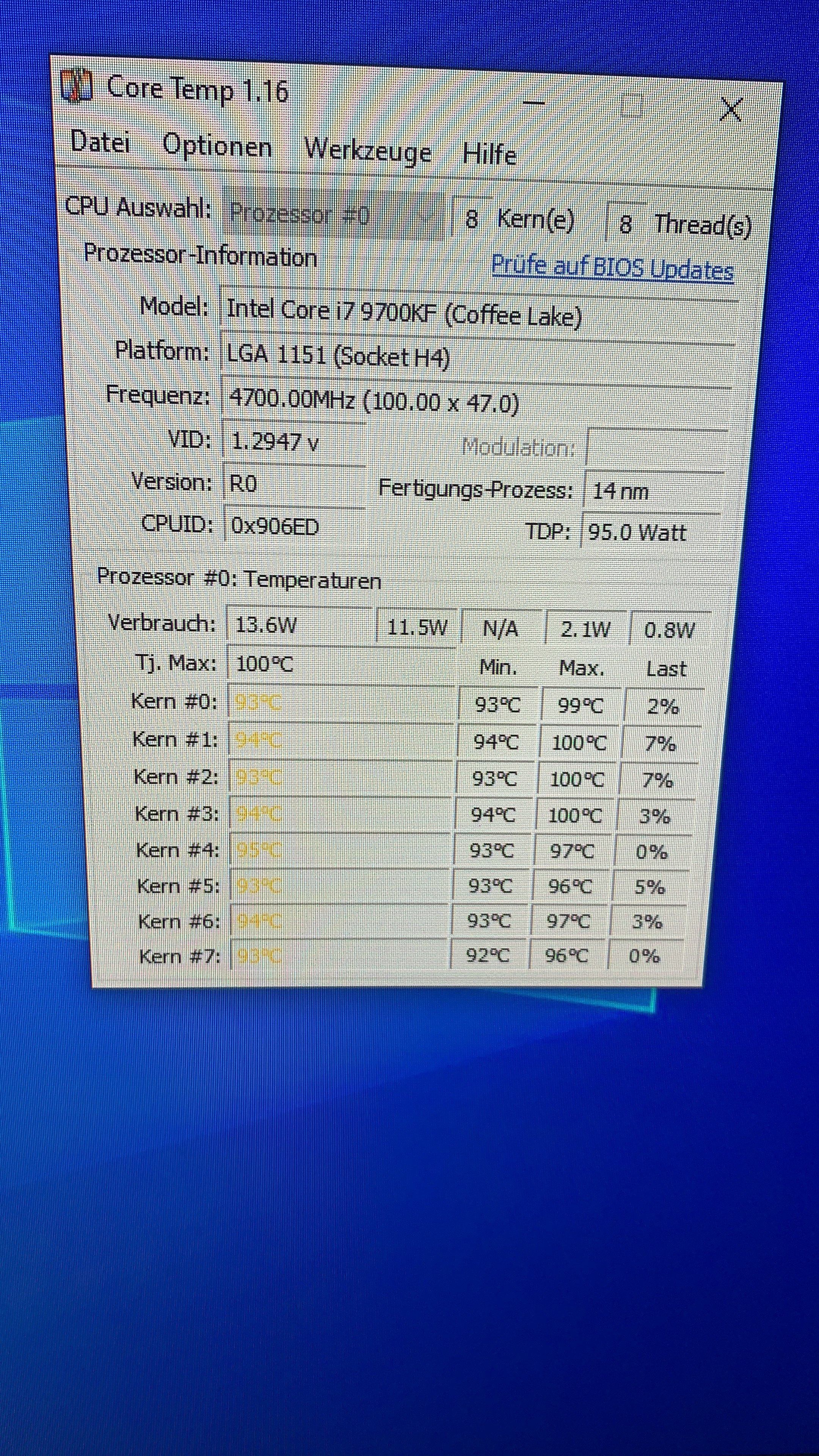 Kurz nach dem Start erhöht sich die Geschwindigkeit der Lüfter ( die am Radiator) enorm, die CPU auf über 90 Grad.
