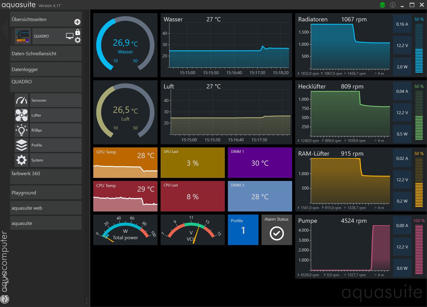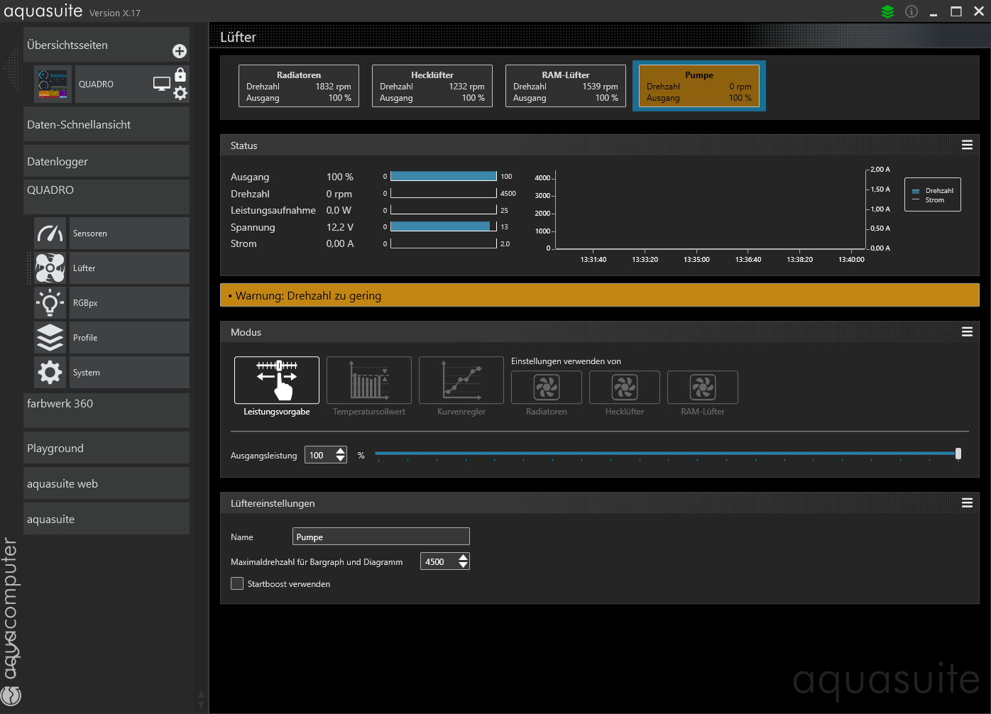 Aber jetzt kommt's: Das Kopieren von HDD nach HDD war fertig. Ich habe einen Neustart gemacht, dem RAID-Treiber einen Rebuild befohlen und das XMP-Profil des RAMs aktiviert. Wieder in Windows die Lüfterdrehzahlen reduziert - gerade rechtzeitig, um ein bekanntes Geräusch zu hören: Die Pumpe auf voller Drehzahl!