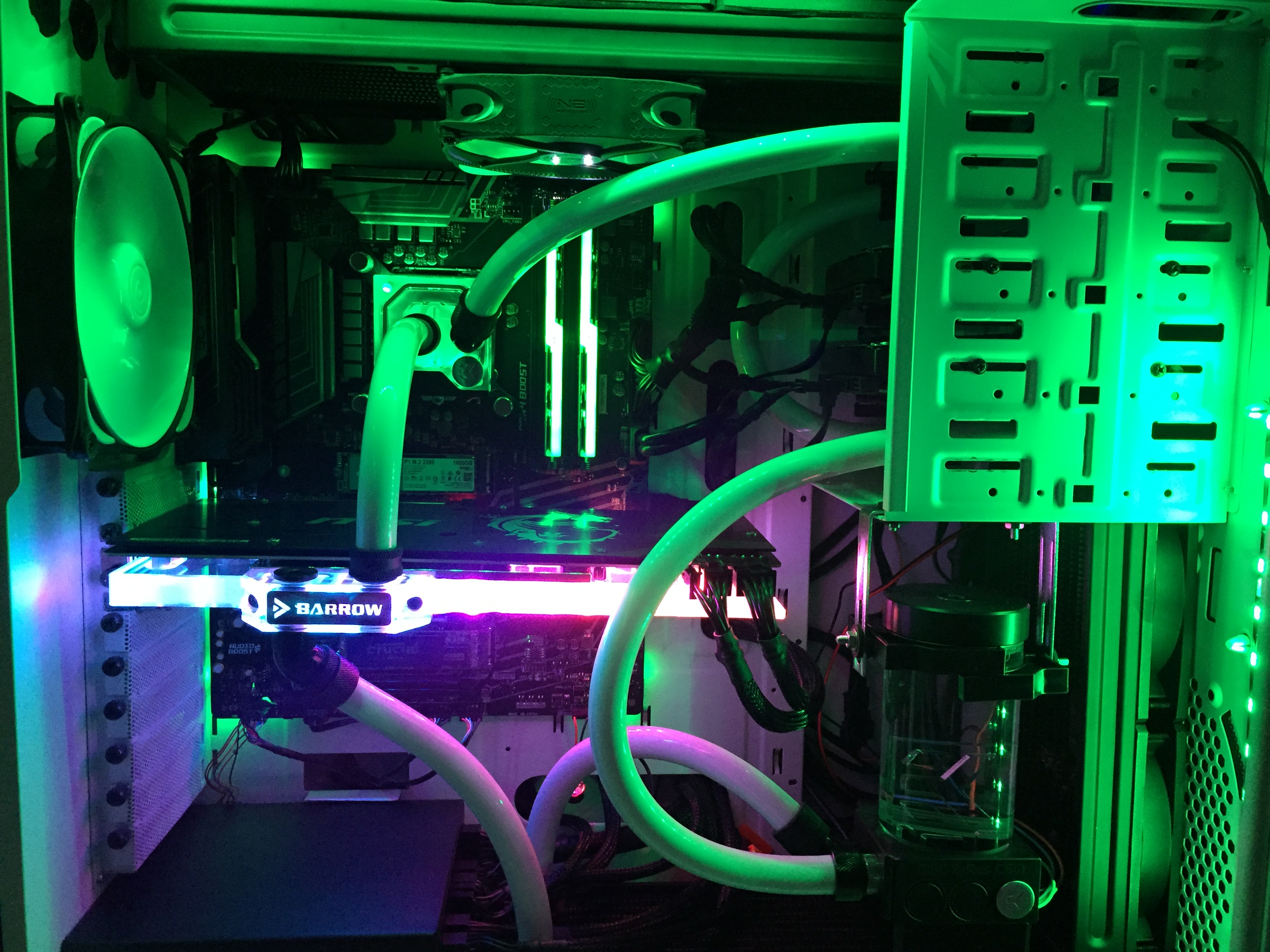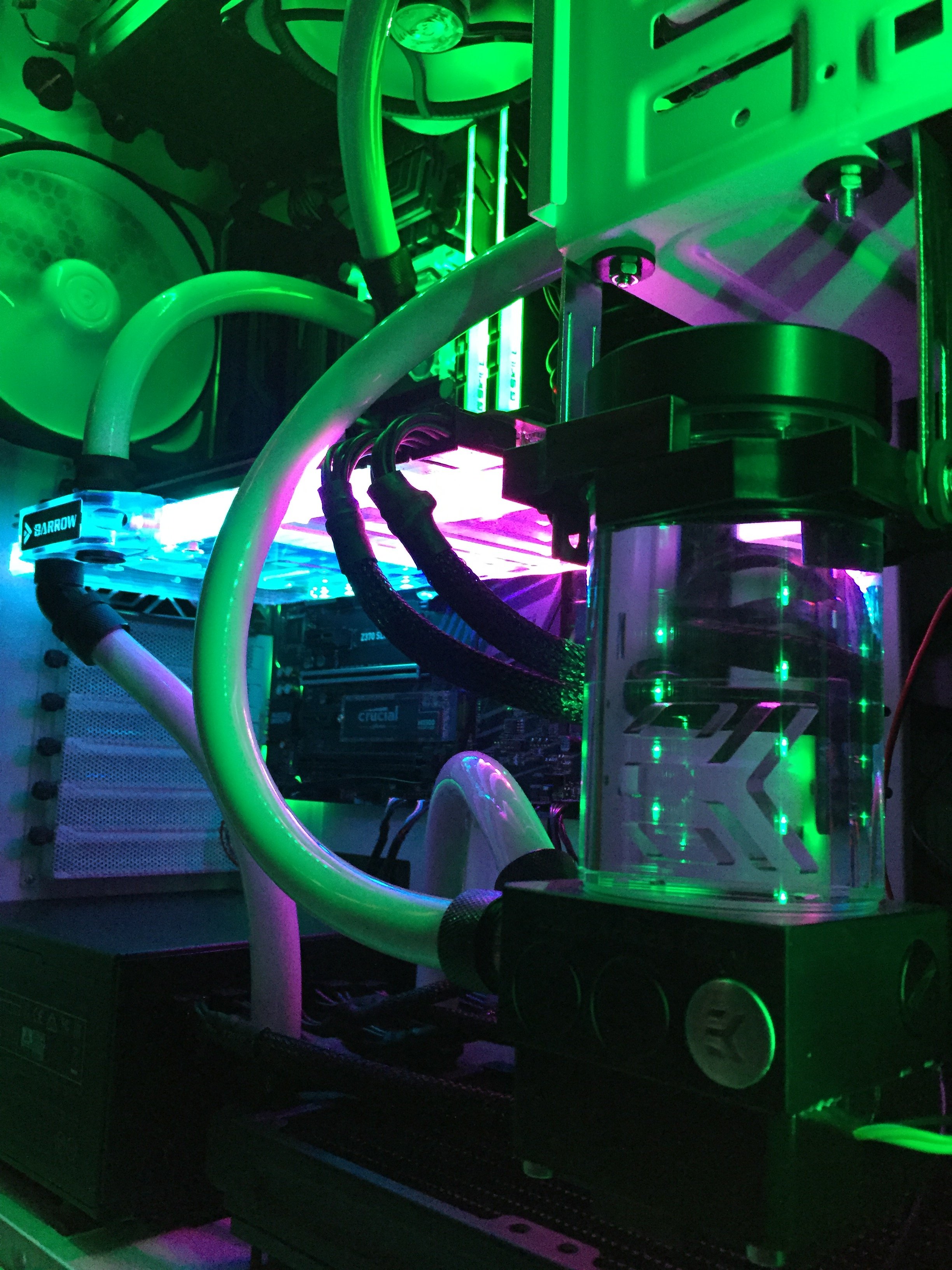Der Loop umfasst CPU und GPU (s. Sig) und wird belüftet mit zwei 240er und einem 360er Radiator.