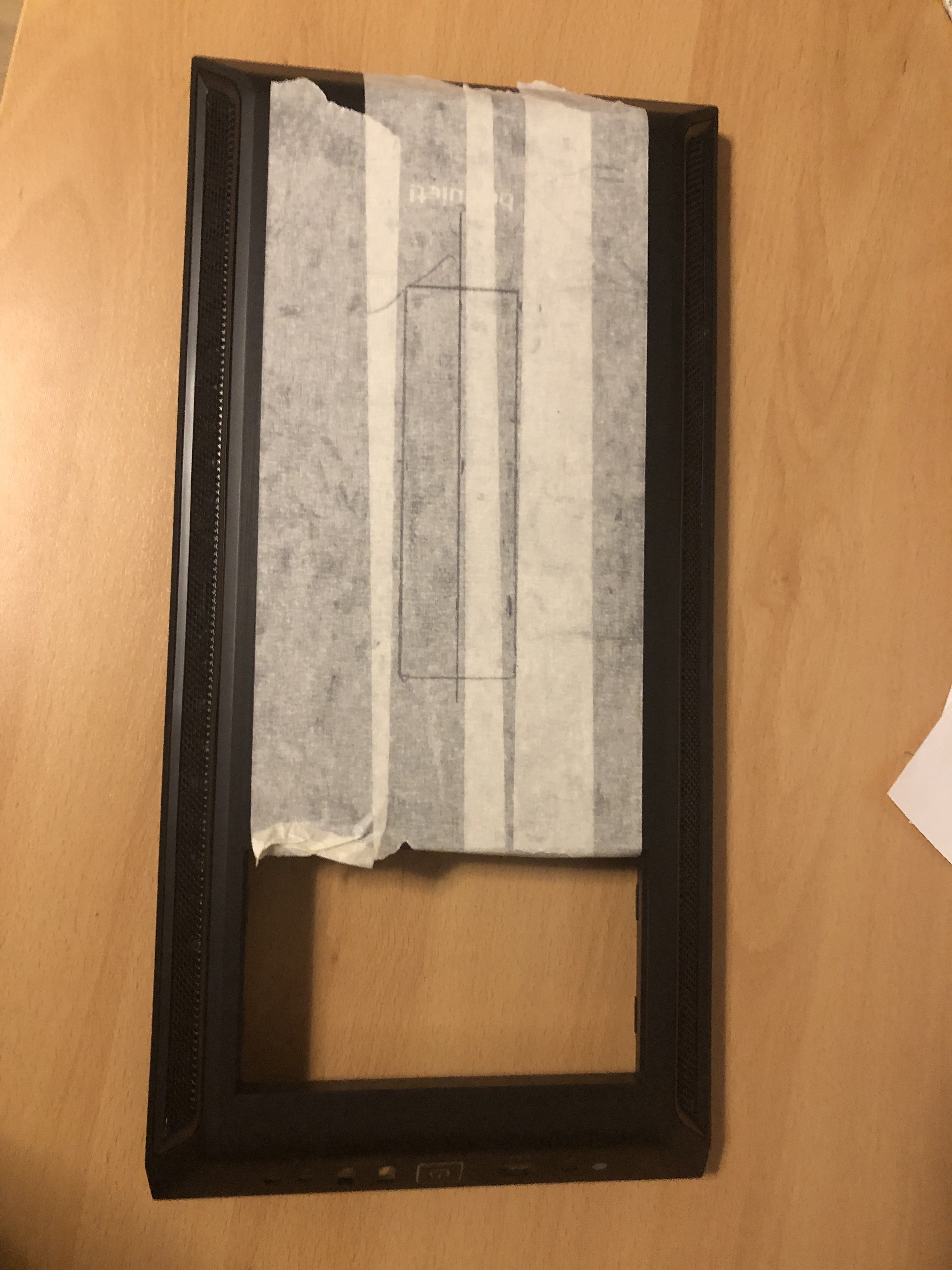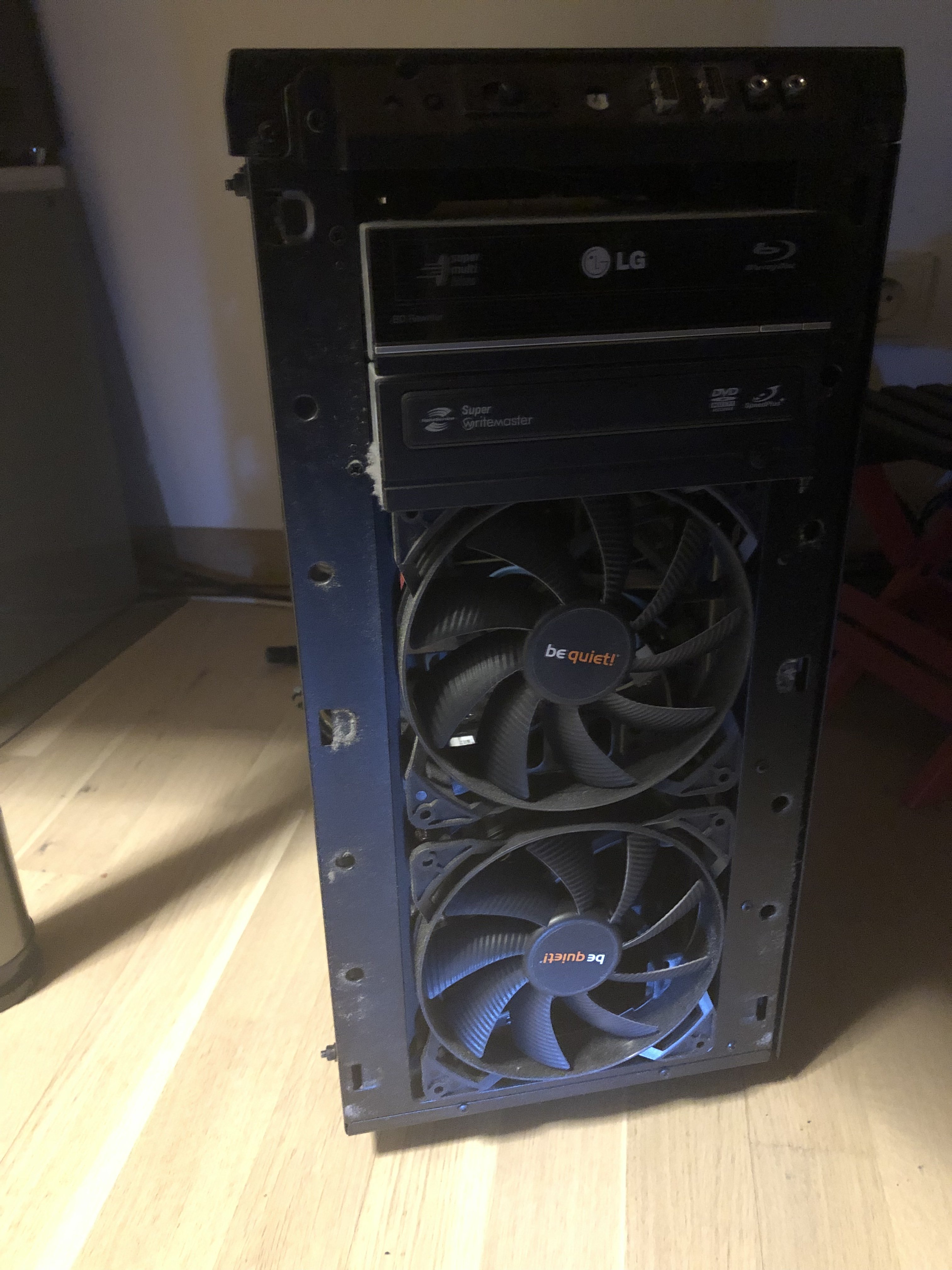 Aber da die Front so gut wie keine Luft durchlässt und ich trotz mehrerer Gehäuselüfter nicht mehr weiter weiß, habe ich heute in die Front einfach eine 5,25 Zoll Slotblende eingefräst.
