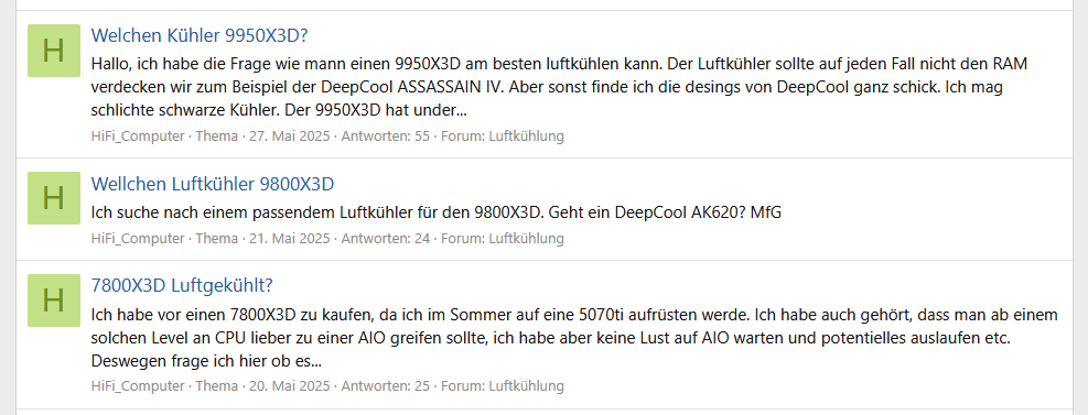 Okay, es mag sein, dass das ein paar viele Luftkühler Threads waren… Aber die waren nicht für meinen eigenen PC, hatte zwischenzeitig noch was anderes geplant. My Bad 😐midwed schrieb:Alleine die drei Threads aus dem Screenshot innerhalb einer Woche 🥴