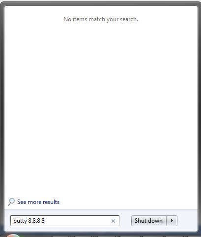 putty session gleich in der Windows Suche öffnen „Win Taste“ -> putty beispiel.de