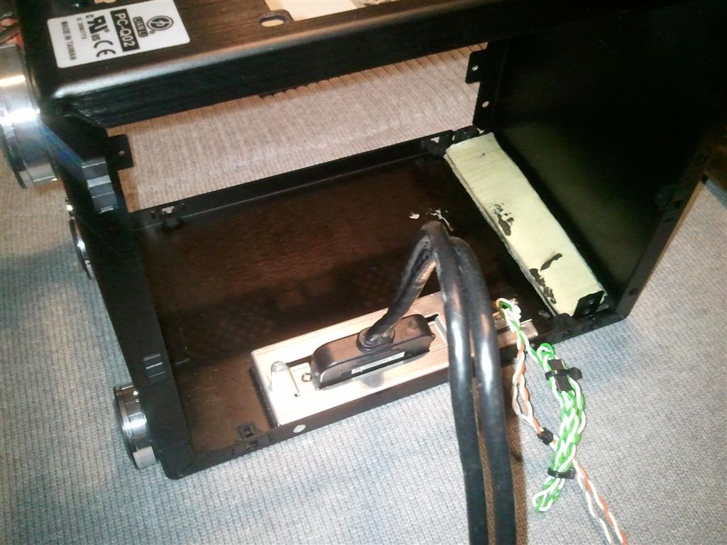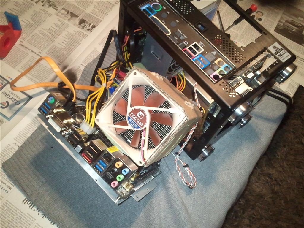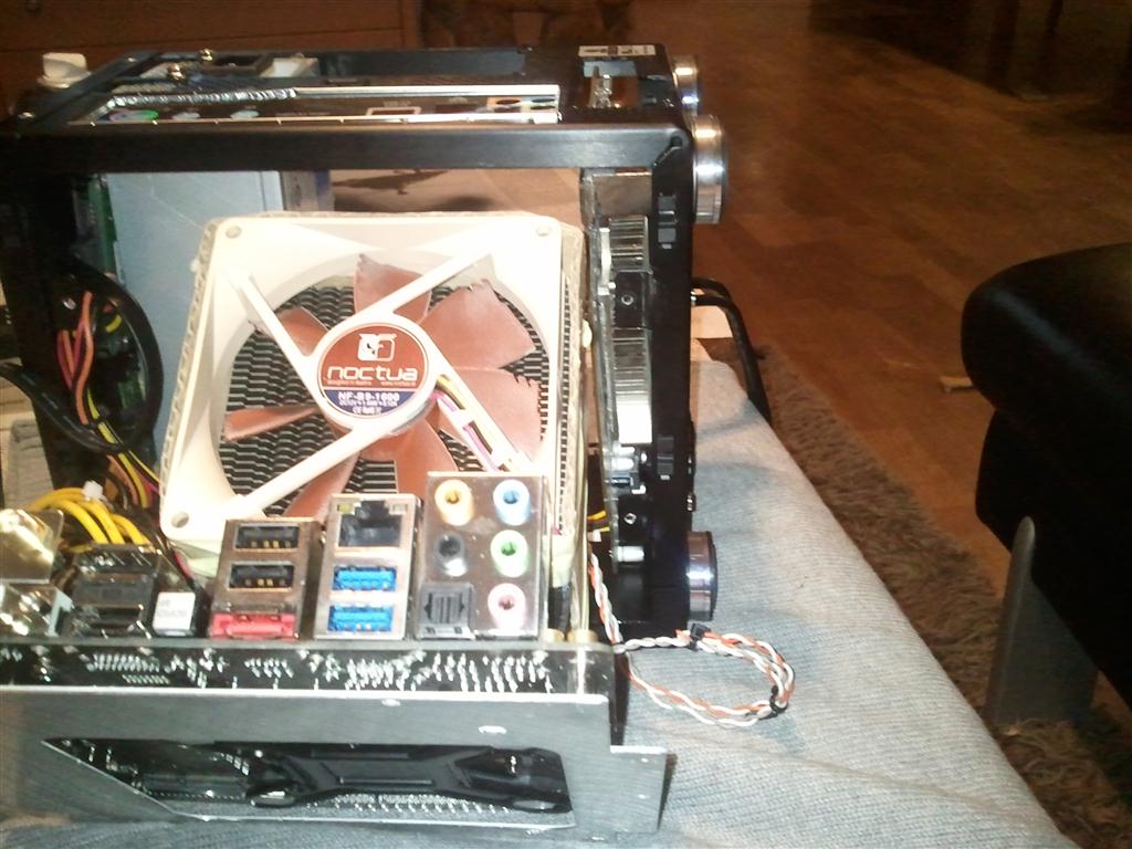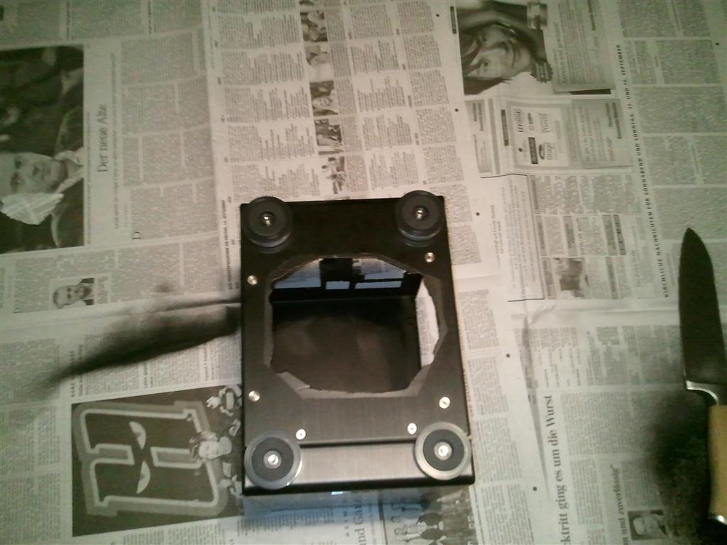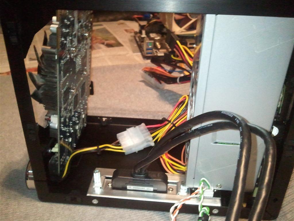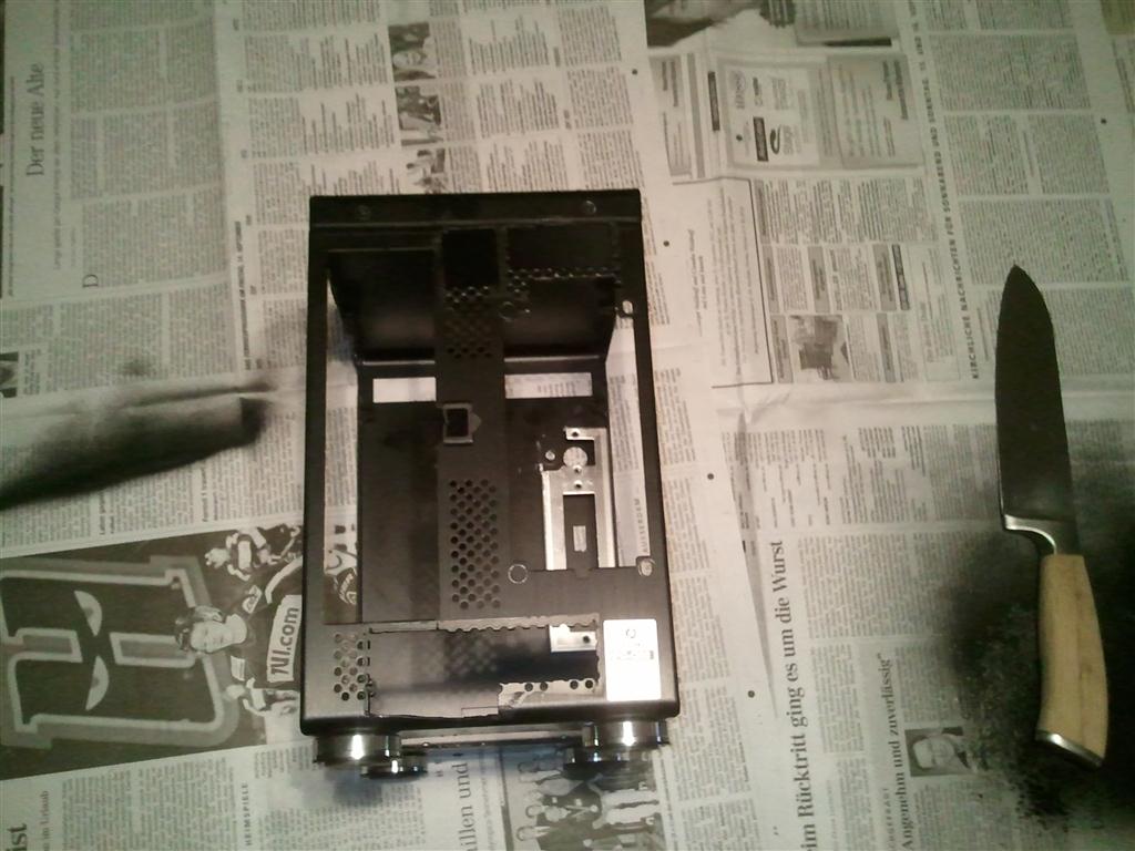 Weiteres, die 34mm Breite der Club 3D 7770 sind auch nicht ohne, Loch im Boden ist notwendig, nur wie groß soll es sein, Platz zum Ausschneiden in der Bodenplatte ist auch limitiert, dazu kommen Lian Li SD-02A Gehäuse Standfüße 35mm die ich eingebaut habe.