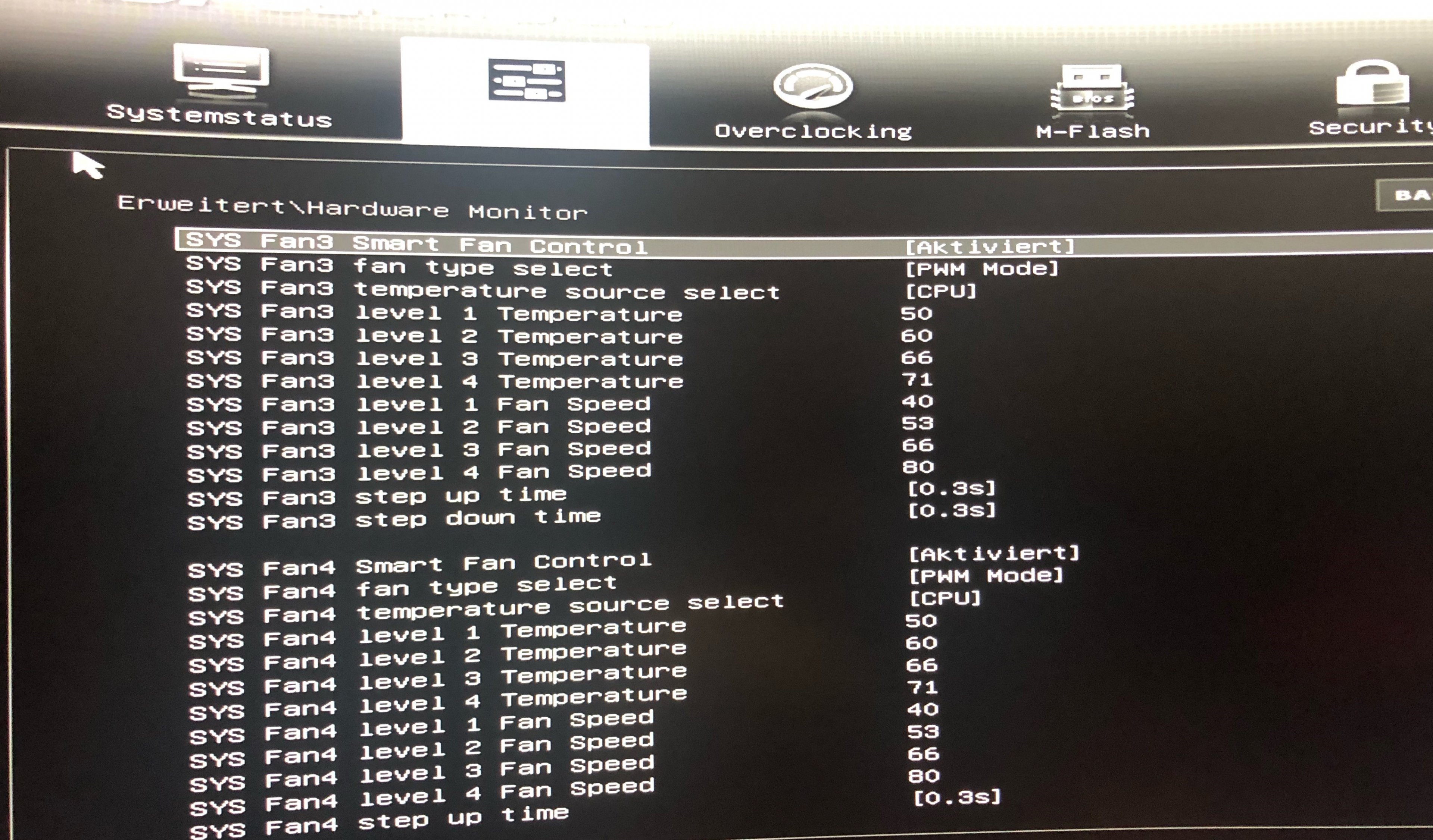 Die Lüfter (3 Stück) laufen im PWM Modus auf Volllast und ich krieg ich einfach nicht geregelt.