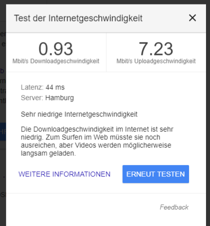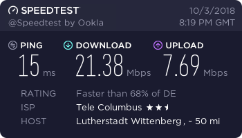 ich würde dann jetzt noch stündlich (wenn möglich) Speedtests mit Screenshots machen, dass ich die abendlichen Probleme belegen kann. Vielleicht noch mal rückrufen, ob dem Techniker bestimmte Daten weiter helfen könnten, wobei das jetzt wohl zu kurzfristig ist. Vielleicht auch einen längeren Download loggen, wo man sehen könnte, dass die Datenrate stark schwankt, aber keine Ahnung, wie man das brauchbar mitschreiben kann.