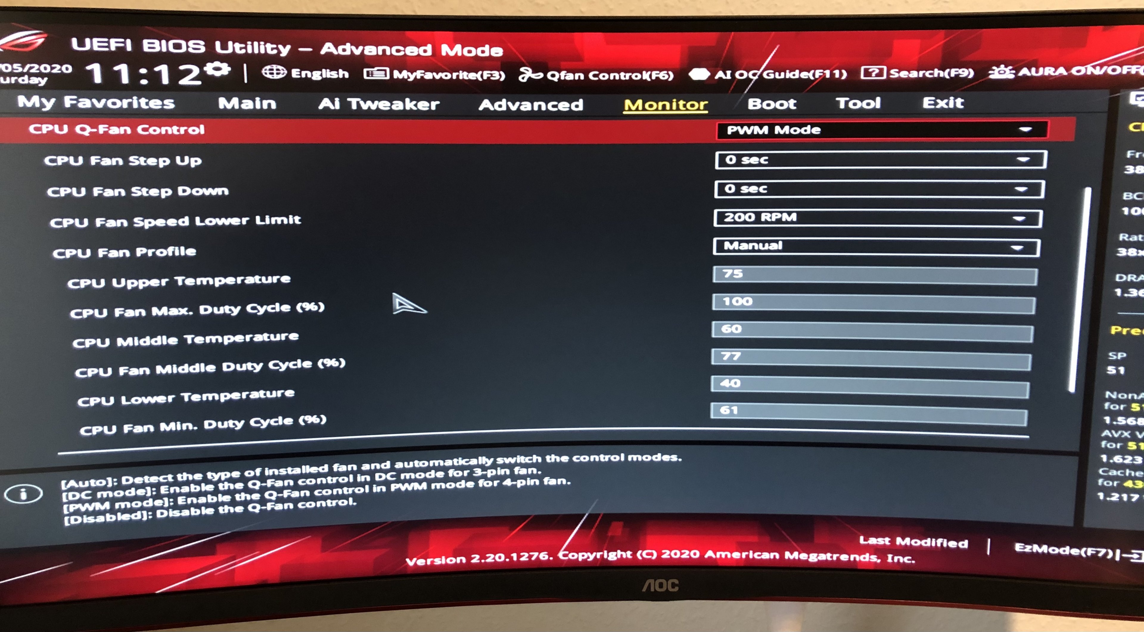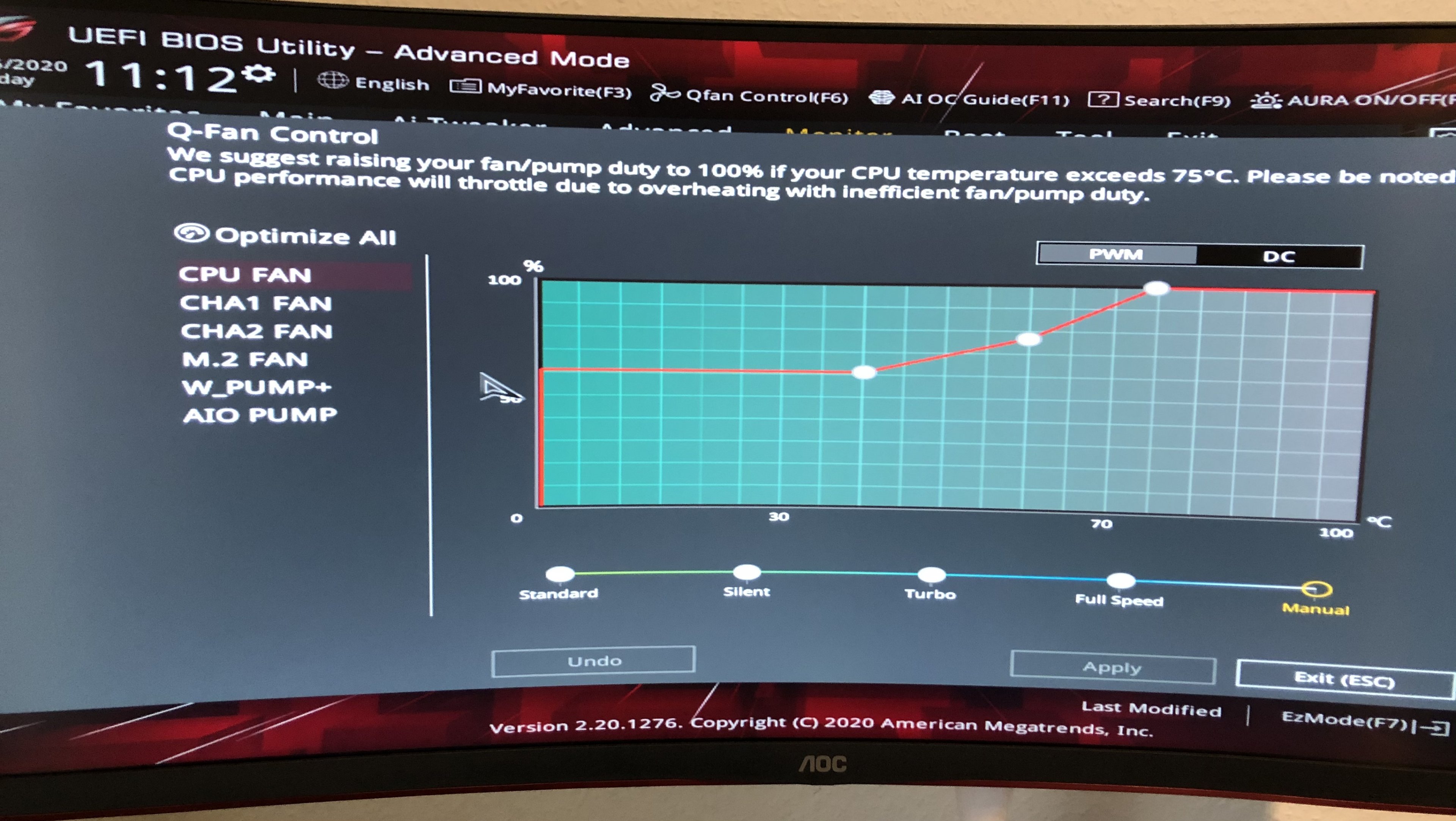 Anbei meine Q-Fan Einstellungen. Hab mal sowohl den Graphen als auch die Einstellung über Zahlenwerte bei Monitoring angehängt.