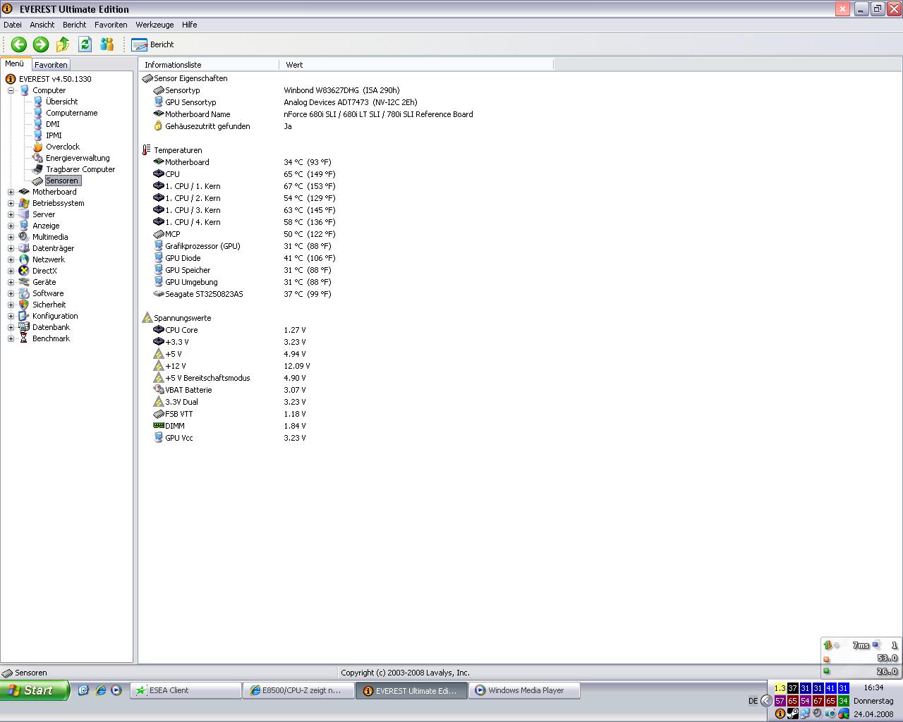 also das ist schon komisch. Schaut euch mal die Core 1 und 2 Temperatur an un die von Core 3 und 4. Da stimmt was nicht. Entweder ist der CPU Kühler so schief, dass er nur die Hälfte der CPU richtig kühlt oder die WLP ist falsch verteilt bzw. falsch aufgetragen.