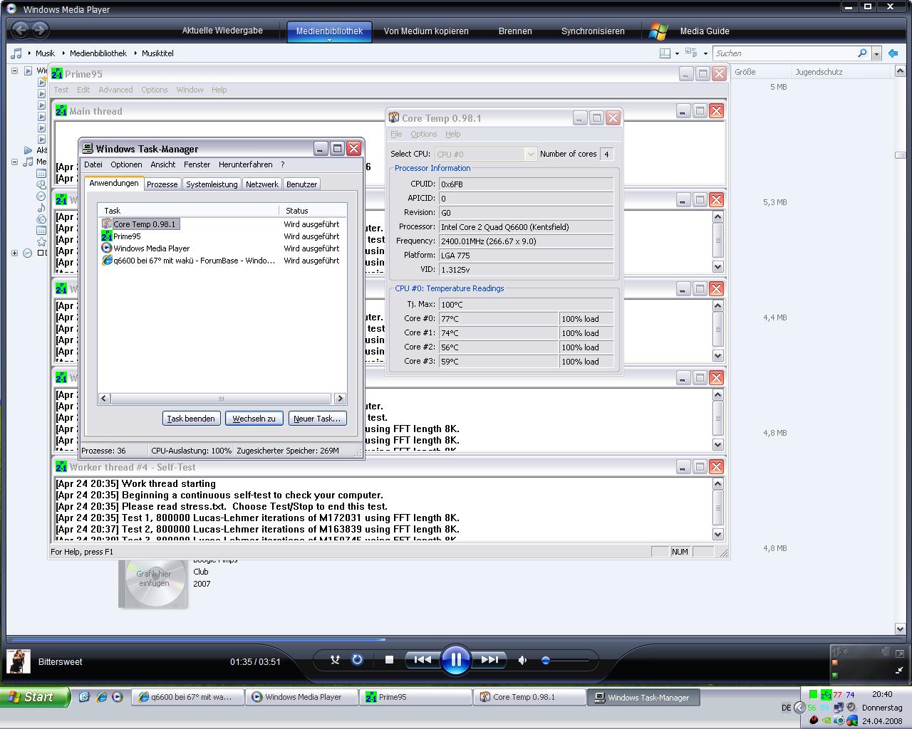 q6600 bei 67° mit wakü