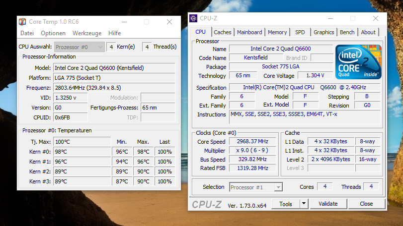 Ich nutze auf einem MSI P43 Neo-F Board einen Core 2 Quad Q6600 @ 3 GHZ (9x333) der sehr heiß wird.