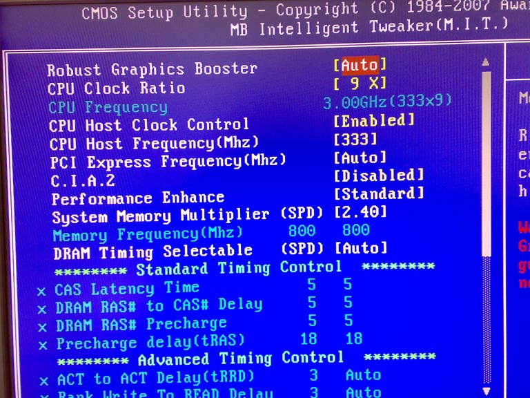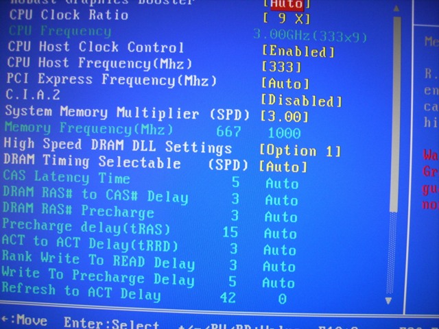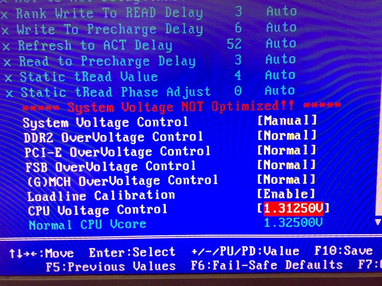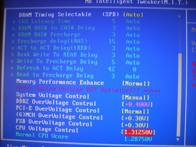nach vielem Lesen hier im Forum, dachte ich das es kein Hexenwerk sein sollte meinen Q6600 G0 auf 3Ghz zu treiben. Also ab in die Bios und folgende einstellungen getätigt, fbs auf 333x9 gesetzt, Speicherteiler auf 2,40 und die vcore auf 1,312V gestellt. Die 1,312V hatte ich zuvor mit CPU-Z ausgelsen unter Normaltakt und da ich schon oft hier im Forum gelosen habe, dass man de 3Ghz ohne vcore erhöhung schafft habe ich die mal so eingestellt. So dann gings los, erster Neustart, es wird im Bios alles schön angezeigt so wie ich es eingestellt habe Q6600 3Ghz (333x9), dann verabschiedet sich aber auch schon mein rechner, d.h. er startet von selbst neu und hat dann dannach wieder Standardtakt 2,4Ghz. Hab dann die vcore noch bisschen in die Höhe getrieben (bis max. auf 1,35V) und auch versucht mal die Timings vom Ram manuell einzustellen, hilft aber alles nichts. Was mich dazu noch stark irritiert ist, das wenn ich die vcore manuell einstelle, im Bios die Meldung blinkt SYSTEM VOLTAGE NOT OPTIMIZED.