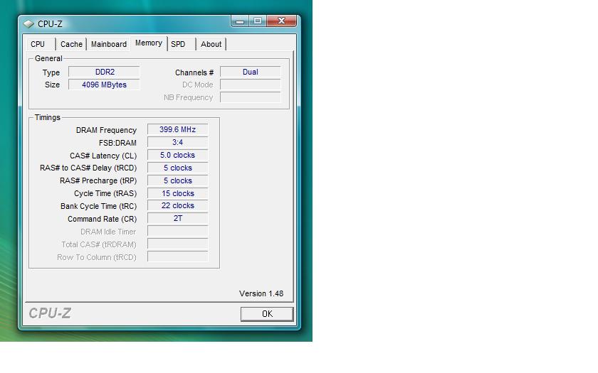 Timings von CPU-Z übernommen und auf 800mhz eingestellt.