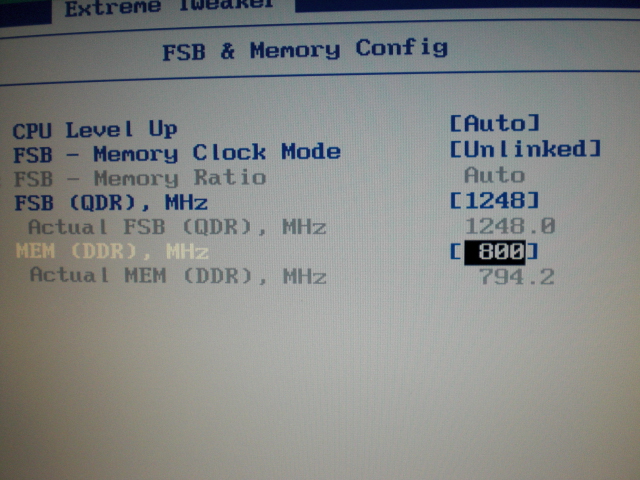 ich habe im Bios die FSB - Speichertacktmodus auf manuell stehen , so sucht das Bios immer den passenden Teiler das man nicht über 800 mhz kommt , kann dann nur passieren das sie auch mal mit Z.B. 796 laufen wenn die FSB schlecht teilbar ist , das ganze setzt voraus das der Multi auf 9x steht . so läuft es bei mir .