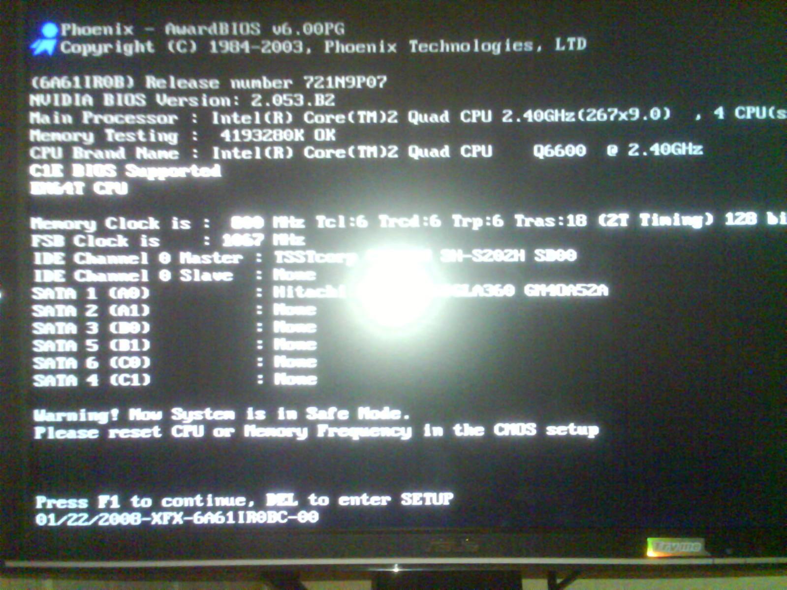also mein CPU lief jez eine ganze weile auf 4x3,15 GHZ, jetzt nach dem er einmal abgestürzt ist startet er plötzlich mit 4x2,4 GHZ also dem Standarttakt! Mein problem ist jezt wenn ich versuche den Takt wieder zu erhöhen, startet er trotzdem mit dem Standarttakt...zb.: wenn ich den FSB-Takt auf 400MHZ setze startet er trozdem mit 266MHZ, er nimmt einfach keine veränderungen an nur wenn ich den multiplikator erhöhe startet er in einem anderen takt...mache ich irgendt etwas falsch? Die spannung habe ichs chon erhöht oder gesenkt...bringt alledings nichts da er nach neustart wieder mit mit der standart spannung startet! zum verzweifeln....