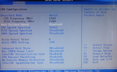 Gestartet wird mit dem Multiplikator von 6, der Ram ist ebenfalls beim Starten untertaktet. Beim letzten Start des Rechners bot meine Grafikkarte mit der GPU Clock nur 250 MHZ, nachdem ich nun neustartete um die CMOS Bilder zu machen ist sie wieder Standardmäßig bei 800 MHz.