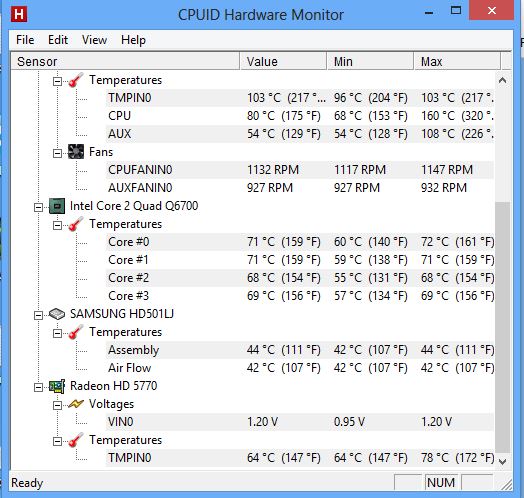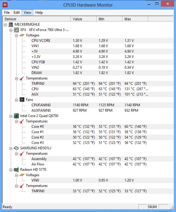 Außerdem habe ich von max. Temp. für den Q6700 von 72°C gelesen. Bezieht sich das auf die Temp. der Kerne oder den Wert "CPU"? Wo genau wird "CPU" eigentlich gemessen?